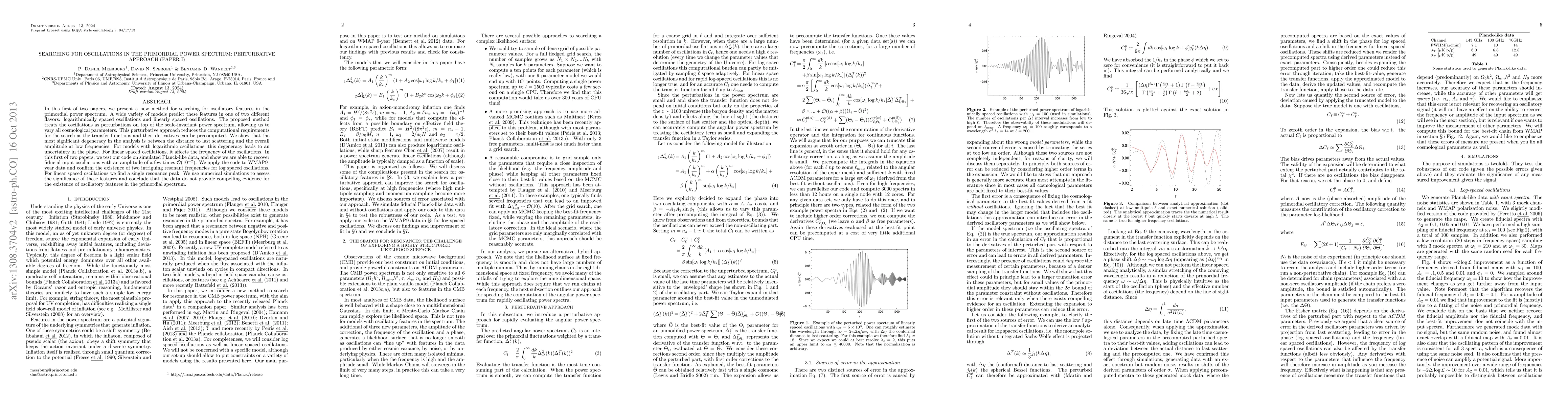 This paper introduces a perturbative method to search for oscillatory features in the primordial power spectrum, distinguishing between logarithmic and linear oscillations. The method reduces computational load and tests its efficacy on simulated and WMAP9 data, finding no compelling evidence for primordial oscillations.