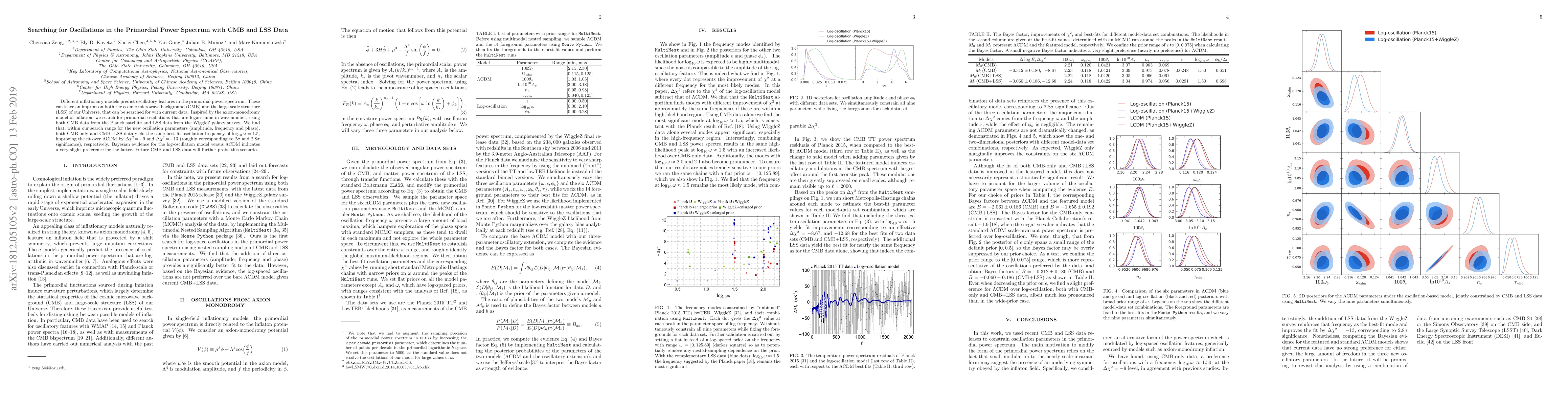 This paper investigates inflationary models that predict logarithmic oscillations in the primordial power spectrum, using data from the Planck satellite for the CMB and the WiggleZ galaxy survey for the LSS. The study finds a best-fit oscillation frequency of $\log_{10}\omega=1.5$, improving the fit over the standard $\Lambda$CDM model, but Bayesian evidence slightly favors $\Lambda$CDM. Future data is expected to provide more insights.