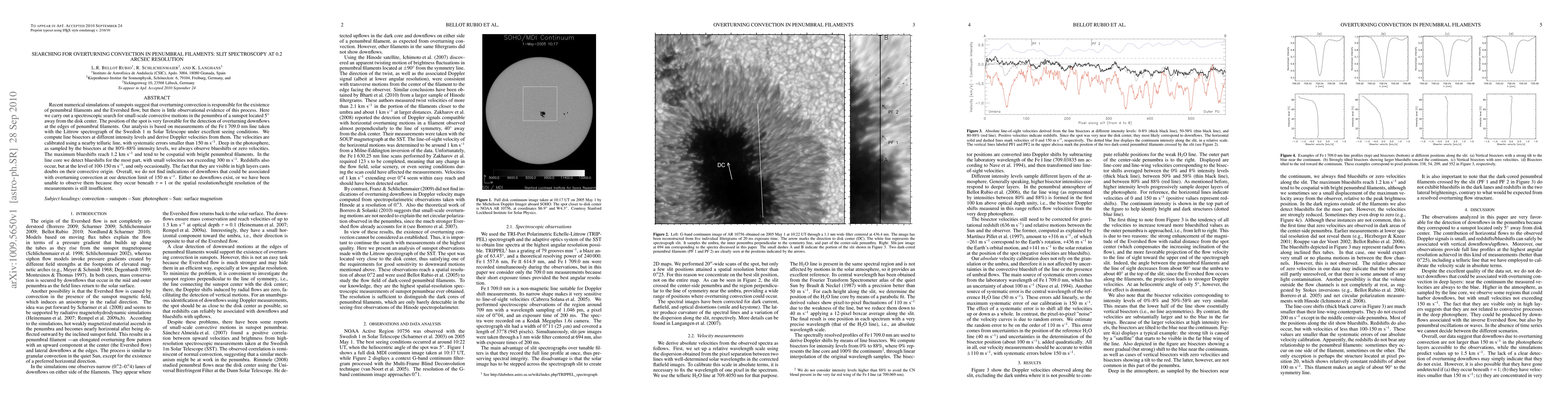 This study uses slit spectroscopy at 0.2 arcsec resolution to search for overturning convection in sunspot penumbral filaments, finding blueshifts and occasional redshifts but no clear evidence of downflows associated with overturning convection, suggesting either their absence or insufficient observational resolution.