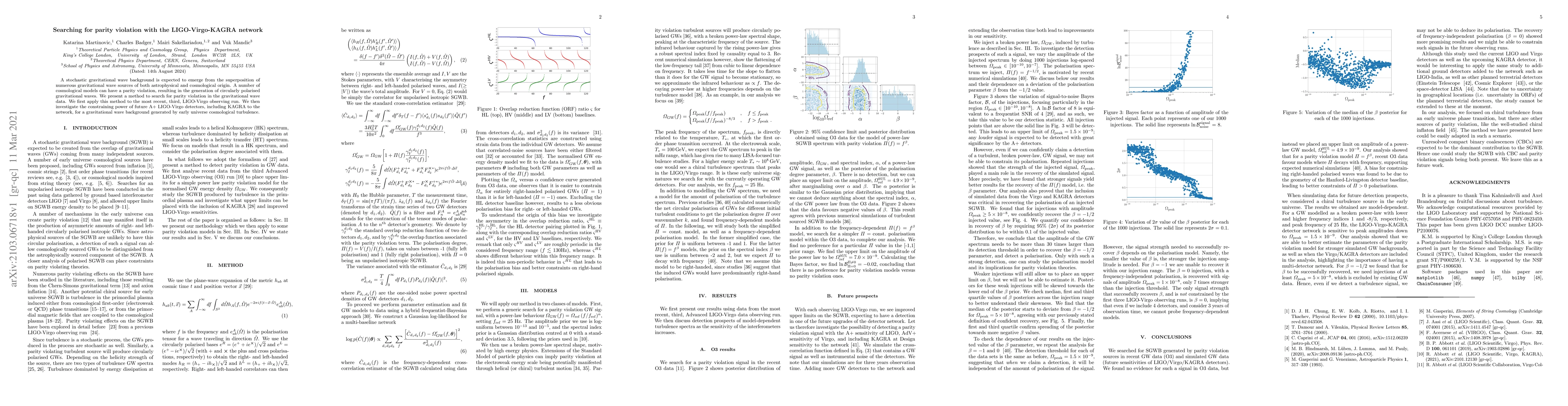 A stochastic gravitational wave background is expected to emerge from the superposition of numerous gravitational wave sources of both astrophysical and cosmological origin. A number of cosmological models can have a parity violation, resulting in the generation of circularly polarised gravitational waves. We present a method to search for parity violation in the gravitational wave data. We first apply this method to the most recent, third, LIGO-Virgo observing run. We then investigate the constraining power of future A+ LIGO-Virgo detectors, including KAGRA to the network, for a gravitational wave background generated by early universe cosmological turbulence.