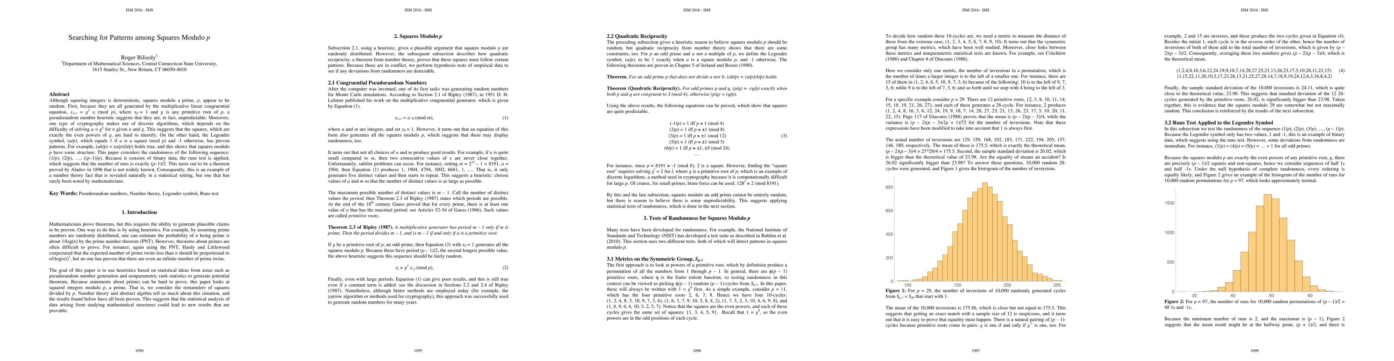 This paper investigates patterns in squares modulo a prime number p, revealing a surprising connection to a lesser-known theorem from 1896 that uses the runs test to analyze binary data.