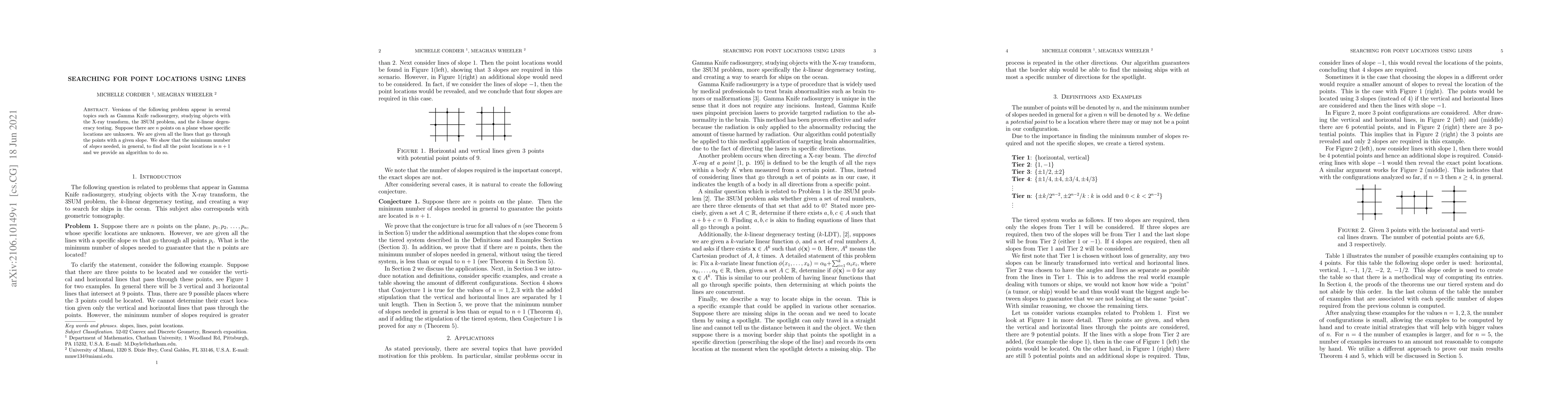 Versions of the following problem appear in several topics such as Gamma Knife radiosurgery, studying objects with the X-ray transform, the 3SUM problem, and the $k$-linear degeneracy testing. Suppose there are $n$ points on a plane whose specific locations are unknown. We are given all the lines that go through the points with a given slope. We show that the minimum number of slopes needed, in general, to find all the point locations is $n+1$ and we provide an algorithm to do so.