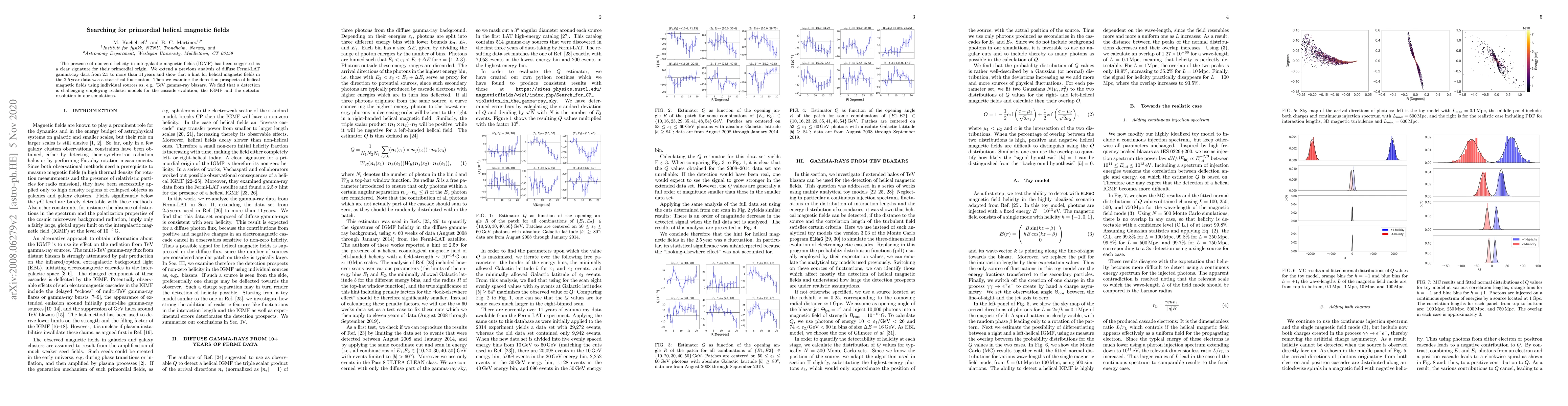 The study investigates the potential of detecting primordial helical magnetic fields in intergalactic space through Fermi-LAT gamma-ray data. The analysis found that previous hints were likely statistical fluctuations, and it concludes that detecting such fields remains challenging despite using realistic models and simulations.