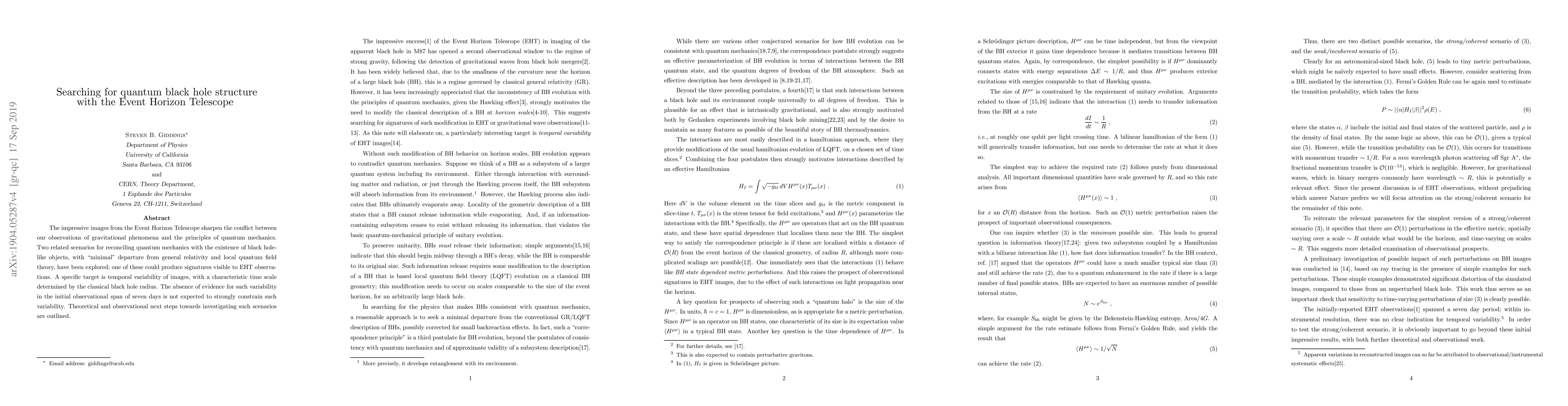 The impressive images from the Event Horizon Telescope sharpen the conflict between our observations of gravitational phenomena and the principles of quantum mechanics. Two related scenarios for reconciling quantum mechanics with the existence of black hole-like objects, with "minimal" departure from general relativity and local quantum field theory, have been explored; one of these could produce signatures visible to EHT observations. A specific target is temporal variability of images, with a characteristic time scale determined by the classical black hole radius. The absence of evidence for such variability in the initial observational span of seven days is not expected to strongly constrain such variability. Theoretical and observational next steps towards investigating such scenarios are outlined.