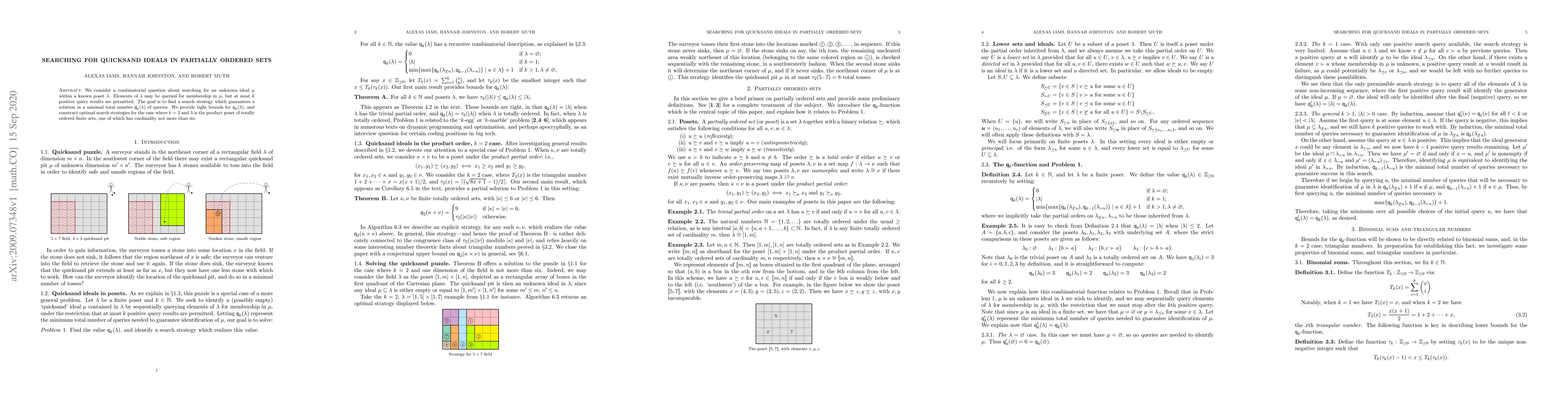 We consider a combinatorial question about searching for an unknown ideal $\mu$ within a known poset $\lambda$. Elements of $\lambda$ may be queried for membership in $\mu$, but at most $k$ positive query results are permitted. The goal is to find a search strategy which guarantees a solution in a minimal total number $m_k(\lambda)$ of queries. We provide tight bounds for $m_k(\lambda)$, and construct optimal search strategies for the case where $k=2$ and $\lambda$ is the product poset of totally ordered finite sets, one of which has cardinality not more than six.