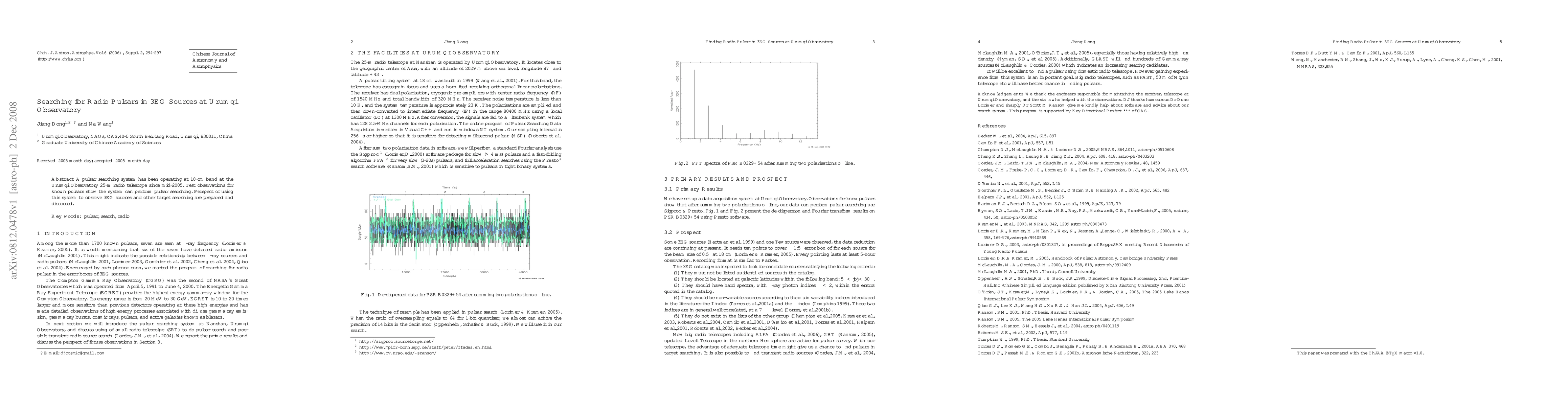 This paper details a pulsar search system operating at Urumqi Observatory since mid-2005, which has successfully tested on known pulsars. The system aims to observe 3EG sources and other targets using a 25-m radio telescope at 18 cm wavelength.