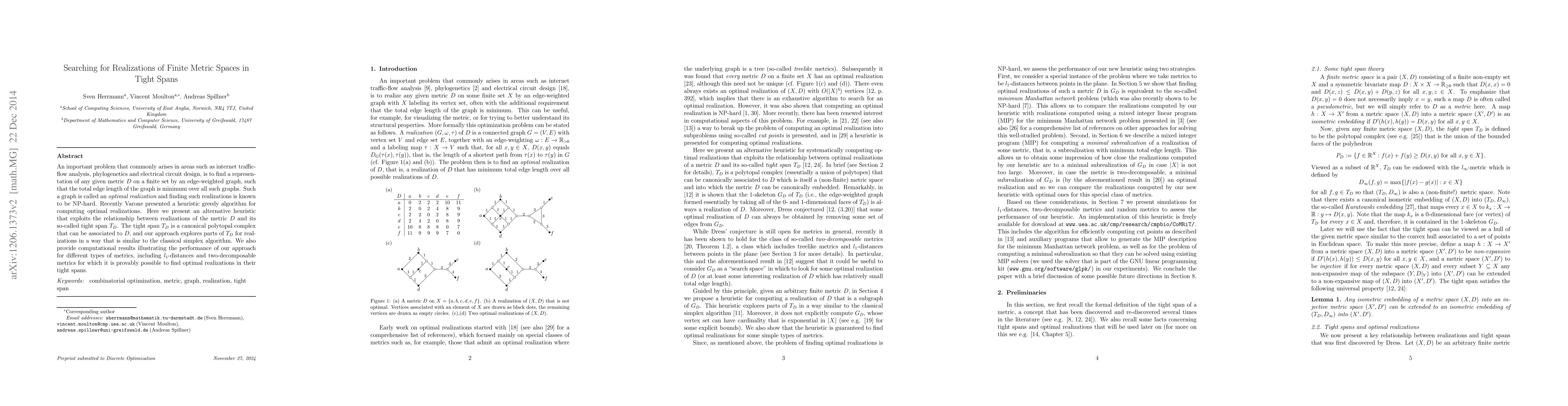 An important problem that commonly arises in areas such as internet traffic-flow analysis, phylogenetics and electrical circuit design, is to find a representation of any given metric $D$ on a finite set by an edge-weighted graph, such that the total edge length of the graph is minimum over all such graphs. Such a graph is called an optimal realization and finding such realizations is known to be NP-hard. Recently Varone presented a heuristic greedy algorithm for computing optimal realizations. Here we present an alternative heuristic that exploits the relationship between realizations of the metric $D$ and its so-called tight span $T_D$. The tight span $T_D$ is a canonical polytopal complex that can be associated to $D$, and our approach explores parts of $T_D$ for realizations in a way that is similar to the classical simplex algorithm. We also provide computational results illustrating the performance of our approach for different types of metrics, including $l_1$-distances and two-decomposable metrics for which it is provably possible to find optimal realizations in their tight spans.