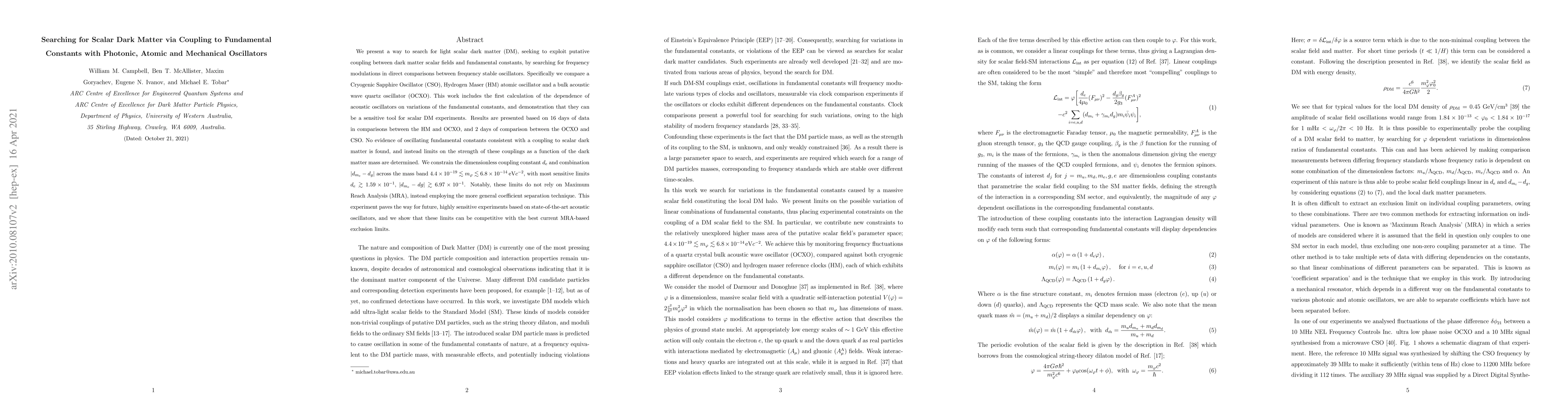 Researchers tested acoustic oscillators for detecting scalar dark matter by analyzing frequency modulations, finding no evidence but setting limits on the strength of couplings to fundamental constants.