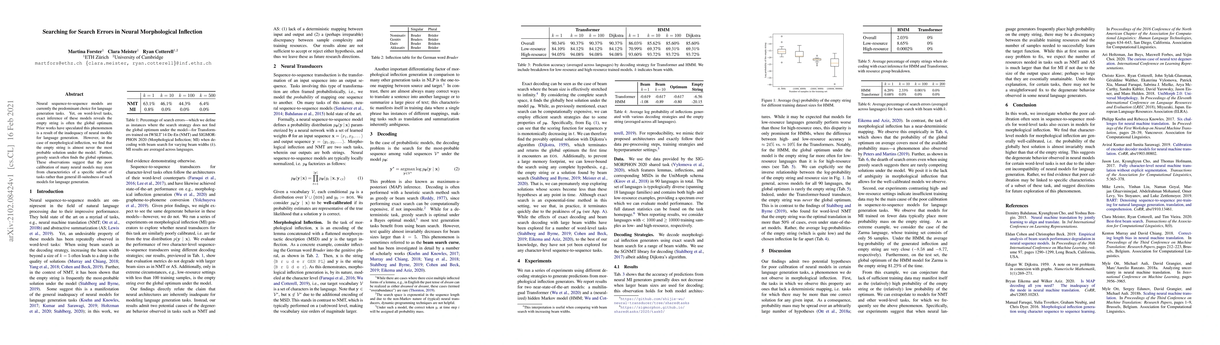 Neural sequence-to-sequence models are currently the predominant choice for language generation tasks. Yet, on word-level tasks, exact inference of these models reveals the empty string is often the global optimum. Prior works have speculated this phenomenon is a result of the inadequacy of neural models for language generation. However, in the case of morphological inflection, we find that the empty string is almost never the most probable solution under the model. Further, greedy search often finds the global optimum. These observations suggest that the poor calibration of many neural models may stem from characteristics of a specific subset of tasks rather than general ill-suitedness of such models for language generation.