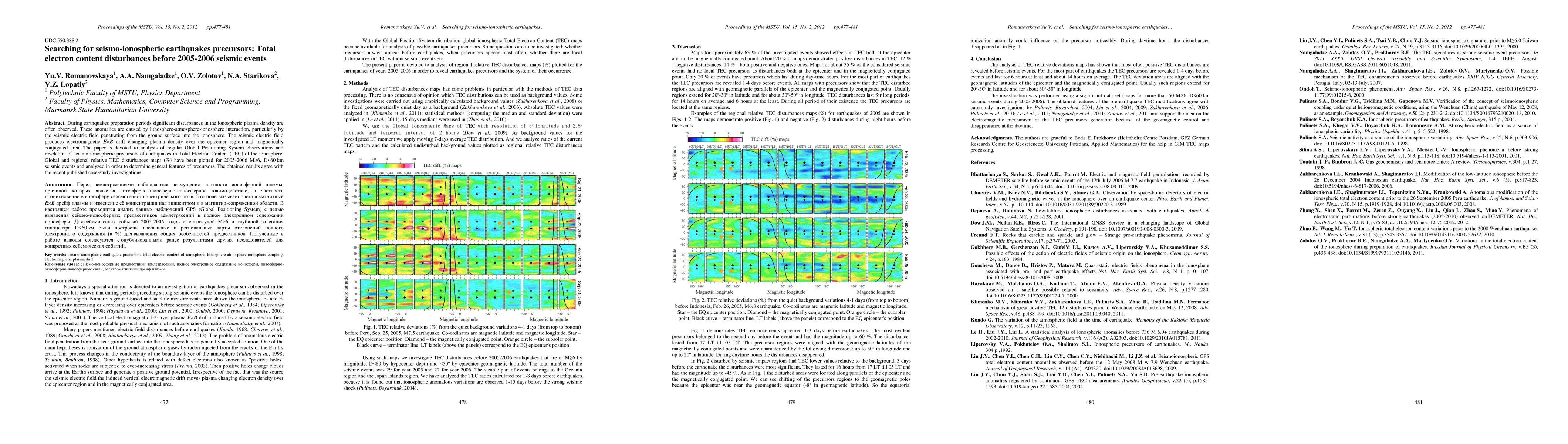 This paper investigates ionospheric disturbances in the form of Total Electron Content (TEC) anomalies before seismic events in 2005-2006, attributing these anomalies to lithosphere-atmosphere-ionosphere interactions. The study reveals global and regional TEC disturbance maps, confirming the presence of seismo-ionospheric precursors and aligning with previous case-study findings.
