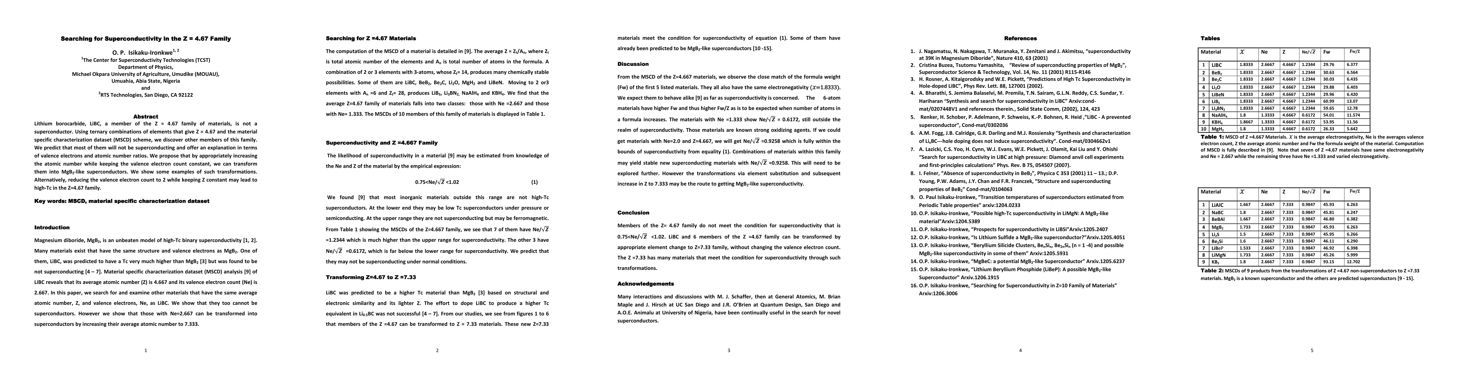 Lithium borocarbide, LiBC, a member of the Z = 4.67 family of materials, is not a superconductor. Using ternary combinations of elements that give Z = 4.67 and the material specific characterization dataset (MSCD) scheme, we discover other members of this family. We predict that most of them will not be superconducting and offer an explanation in terms of valence electrons and atomic number ratios. We propose that by appropriately increasing the atomic number while keeping the valence electron count constant, we can transform them into MgB2-like superconductors. We show some examples of such transformations. Alternatively, reducing the valence electron count to 2 while keeping Z constant may lead to high-Tc in the Z=4.67 family.