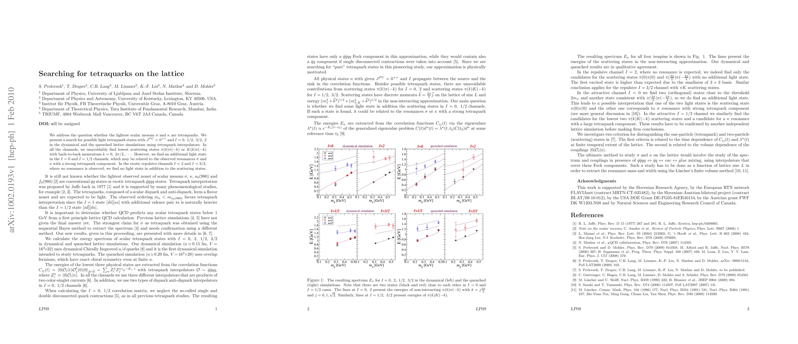 We address the question whether the lightest scalar mesons sigma and kappa are tetraquarks. We present a search for possible light tetraquark states with J^PC=0^++ and I=0, 1/2, 3/2, 2 in the dynamical and the quenched lattice simulations using tetraquark interpolators. In all the channels, we unavoidably find lowest scattering states pi(k)pi(-k) or K(k)pi(-k) with back-to-back momentum k=0,2*pi/L,.. . However, we find an additional light state in the I=0 and I=1/2 channels, which may be related to the observed resonances sigma and kappa with a strong tetraquark component. In the exotic repulsive channels I=2 and I=3/2, where no resonance is observed, we find no light state in addition to the scattering states.
