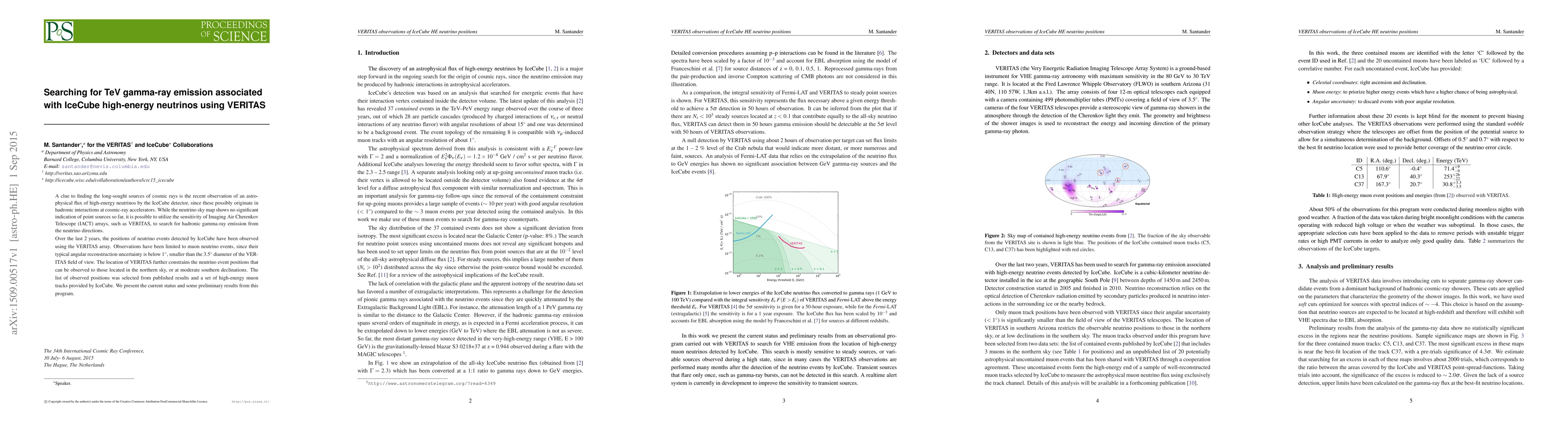 Researchers used VERITAS telescopes to search for gamma-ray emission from IceCube-detected high-energy neutrinos, finding preliminary results suggesting potential sources in the northern sky.