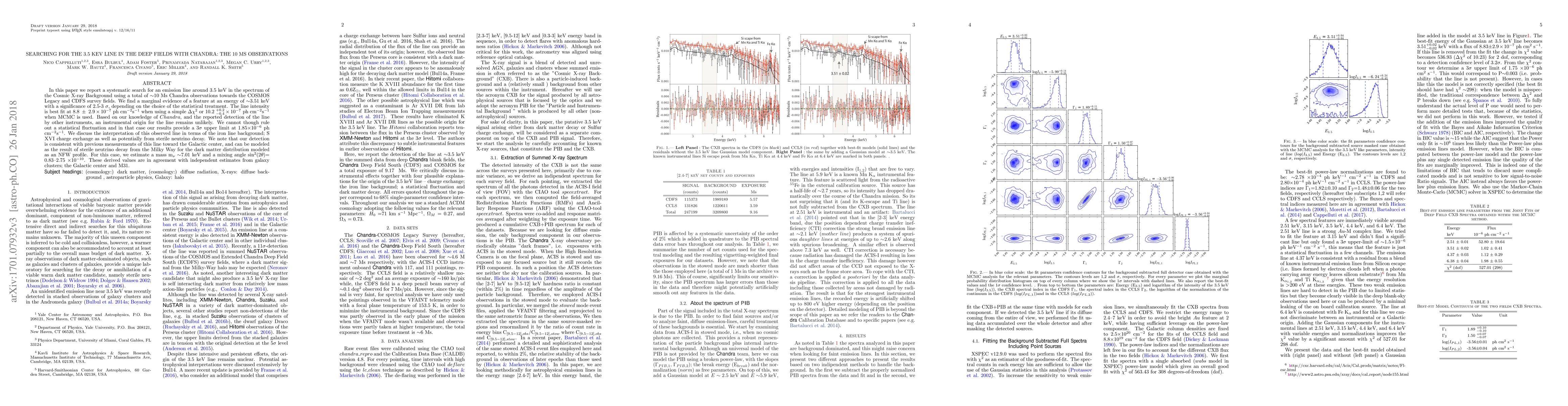 Researchers searched for a 3.5 keV emission line in the Cosmic X-ray Background using Chandra observations and found marginal evidence of its presence, with implications for sterile neutrino decay and dark matter models.