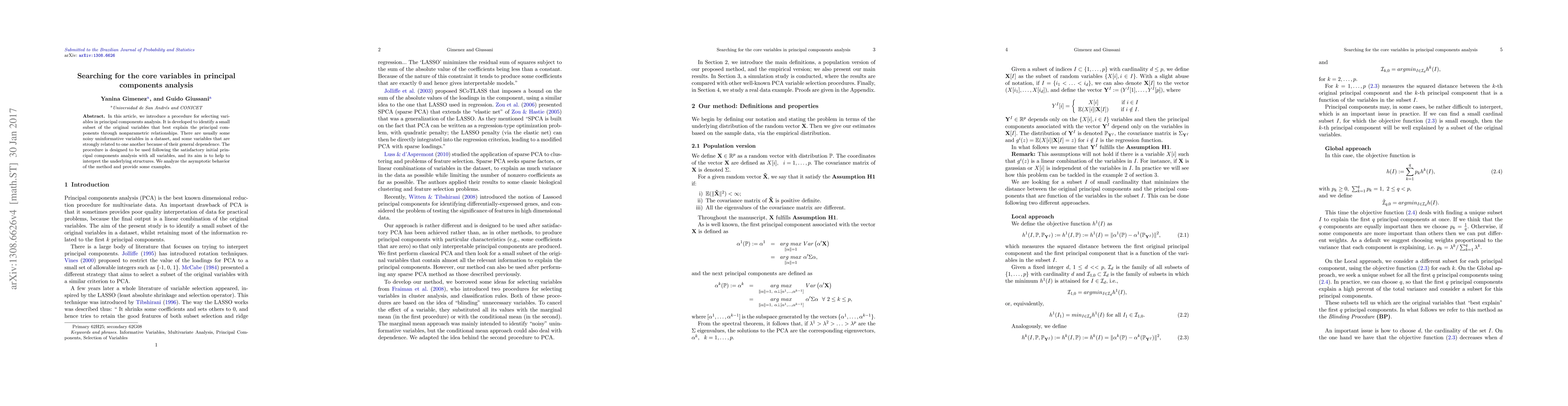 This paper proposes a method to select a core subset of variables in principal components analysis that best explain the principal components through nonparametric relationships, aiming to interpret underlying data structures and reduce noise. The authors analyze the method's asymptotic behavior and provide illustrative examples.