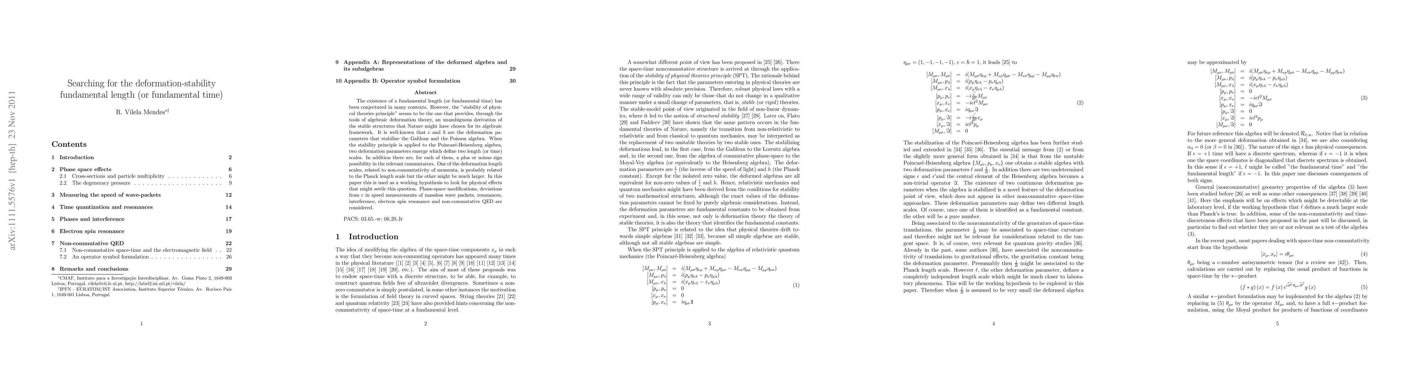 The existence of a fundamental length (or fundamental time) has been conjectured in many contexts. However, the "stability of physical theories principle" seems to be the one that provides, through the tools of algebraic deformation theory, an unambiguous derivation of the stable structures that Nature might have chosen for its algebraic framework. It is well-known that $c$ and $\hbar $ are the deformation parameters that stabilize the Galilean and the Poisson algebra. When the stability principle is applied to the Poincar\'{e}-Heisenberg algebra, two deformation parameters emerge which define two length (or time) scales. In addition there are, for each of them, a plus or minus sign possibility in the relevant commutators. One of the deformation length scales, related to non-commutativity of momenta, is probably related to the Planck length scale but the other might be much larger. In this paper this is used as a working hypothesis to look for physical effects that might settle this question. Phase-space modifications, deviations from $c$ in speed measurements of massless wave packets, resonances, interference, electron spin resonance and non-commutative QED are considered.