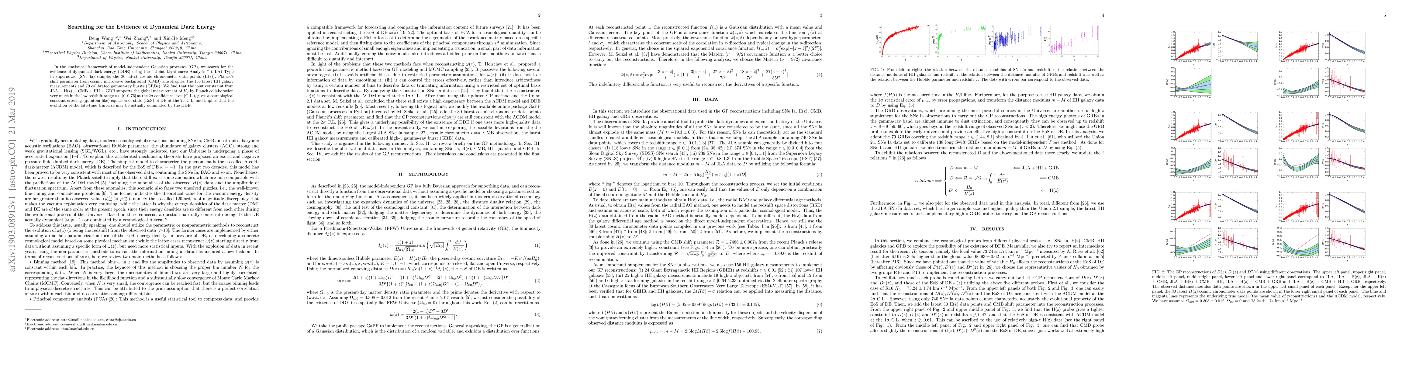In the statistical framework of model-independent Gaussian processes (GP), we search for the evidence of dynamical dark energy (DDE) using the "Joint Light-curve Analysis" (JLA) Type Ia supernovae (SNe Ia) sample, the 30 latest cosmic chronometer data points (H(z)), Planck's shift parameter from cosmic microwave background (CMB) anisotropies, the 156 latest HII galaxy measurements and 79 calibrated gamma-ray bursts (GRBs). We find that the joint constraint from JLA + H(z) + CMB + HII + GRB supports the global measurement of $H_0$ by Planck collaboration very much in the low redshift range $z\in[0, 0.76]$ at the $2\sigma$ confidence level (C.L.), gives a cosmological constant crossing (quintom-like) equation of state (EoS) of DE at the $2\sigma$ C.L. and implies that the evolution of the late-time Universe may be actually dominated by the DDE.