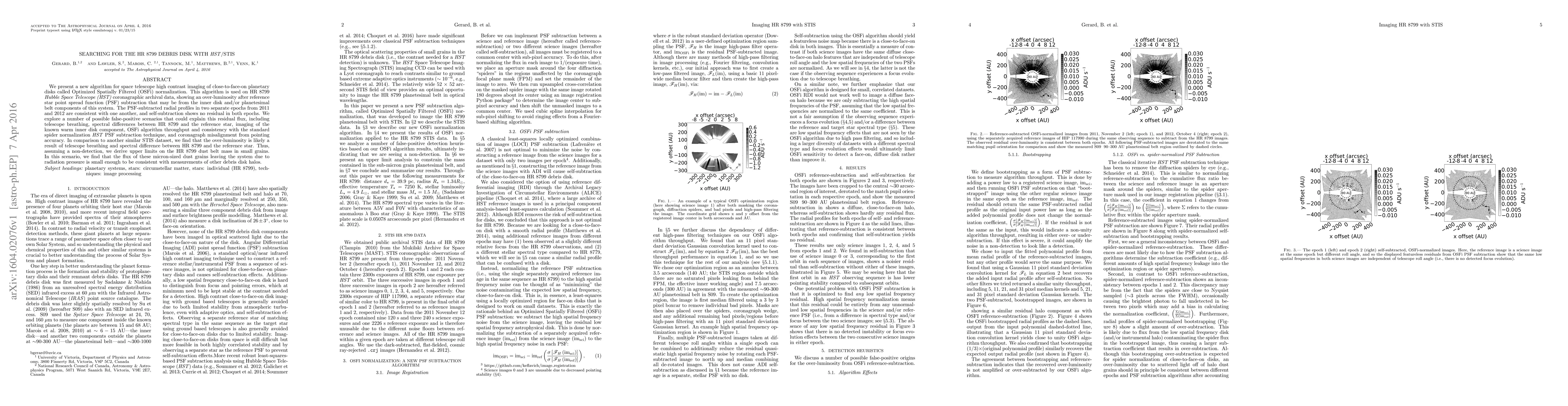 This paper introduces a new high-contrast imaging algorithm, OSFi normalization, to analyze HST/STIS data of HR 8799's debris disk, finding no significant evidence for an inner disk or planetesimal belt. The residual flux is likely due to telescope breathing and spectral differences, leading to upper limits on the dust belt mass.