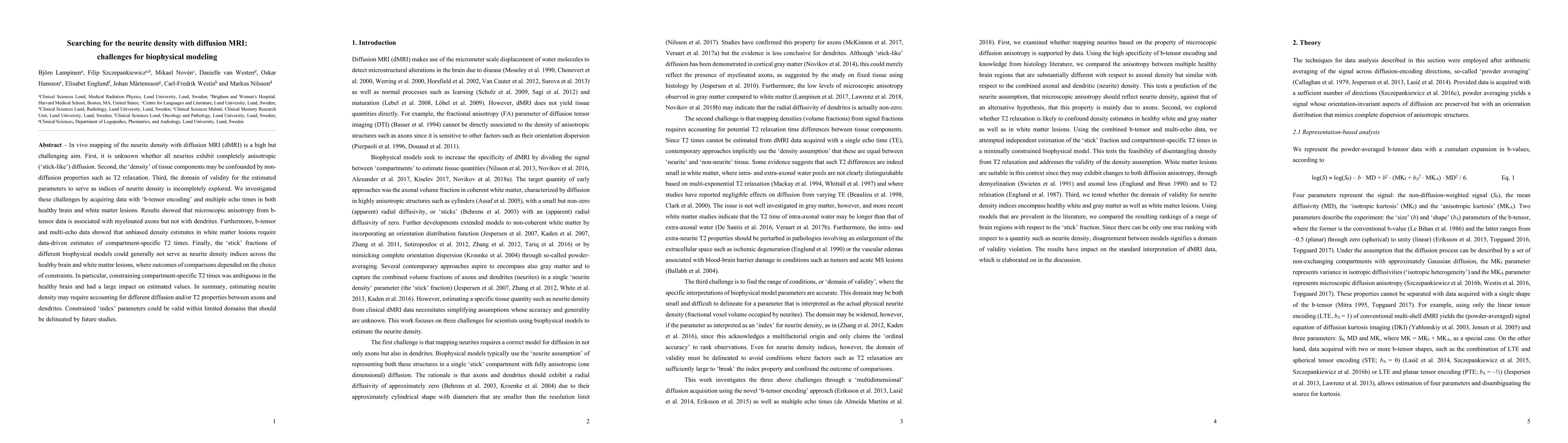 In vivo mapping of the neurite density with diffusion MRI (dMRI) is a high but challenging aim. First, it is unknown whether all neurites exhibit completely anisotropic ('stick-like') diffusion. Second, the 'density' of tissue components may be confounded by non-diffusion properties such as T2 relaxation. Third, the domain of validity for the estimated parameters to serve as indices of neurite density is incompletely explored. We investigated these challenges by acquiring data with 'b-tensor encoding' and multiple echo times in both healthy brain and white matter lesions. Results showed that microscopic anisotropy from b-tensor data is associated with myelinated axons but not with dendrites. Furthermore, b-tensor and multi-echo data showed that unbiased density estimates in white matter lesions require data-driven estimates of compartment-specific T2 times. Finally, the 'stick' fractions of different biophysical models could generally not serve as neurite density indices across the healthy brain and white matter lesions, where outcomes of comparisons depended on the choice of constraints. In particular, constraining compartment-specific T2 times was ambiguous in the healthy brain and had a large impact on estimated values. In summary, estimating neurite density may require accounting for different diffusion and/or T2 properties between axons and dendrites. Constrained 'index' parameters could be valid within limited domains that should be delineated by future studies.