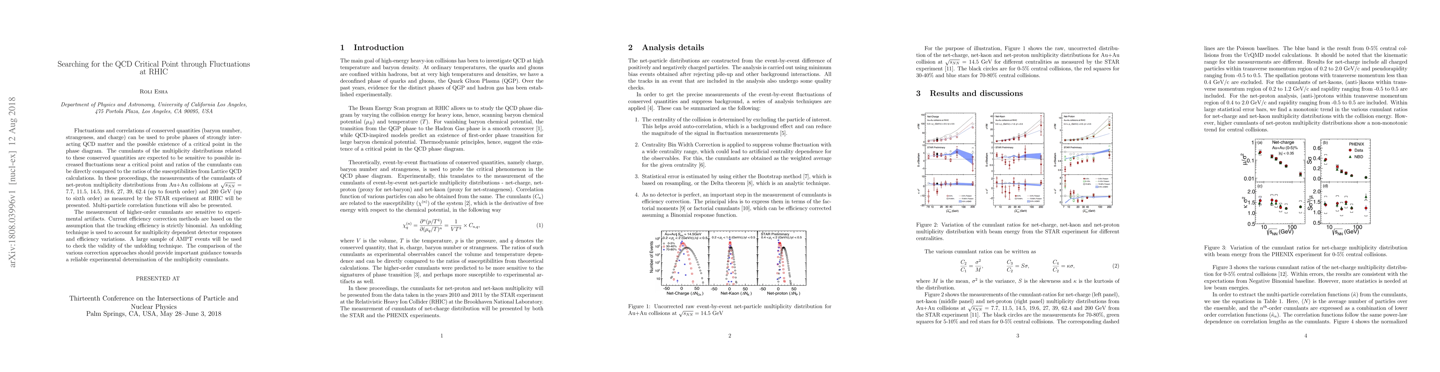 Fluctuations and correlations of conserved quantities (baryon number, strangeness, and charge) can be used to probe phases of strongly interacting QCD matter and the possible existence of a critical point in the phase diagram. The cumulants of the multiplicity distributions related to these conserved quantities are expected to be sensitive to possible increased fluctuations near a critical point and ratios of the cumulants can be directly compared to the ratios of the susceptibilities from Lattice QCD calculations. In these proceedings, the measurements of the cumulants of net-proton multiplicity distributions from Au+Au collisions at $\sqrt{s_{NN}}$ = 7.7, 11.5, 14.5, 19.6, 27, 39, 62.4 (up to fourth order) and 200 GeV (up to sixth order) as measured by the STAR experiment at RHIC will be presented. Multi-particle correlation functions will also be presented. The measurement of higher-order cumulants are sensitive to experimental artifacts. Current efficiency correction methods are based on the assumption that the tracking efficiency is strictly binomial. An unfolding technique is used to account for multiplicity dependent detector responses and efficiency variations. A large sample of AMPT events will be used to check the validity of the unfolding technique. The comparison of the various correction approaches should provide important guidance towards a reliable experimental determination of the multiplicity cumulants.