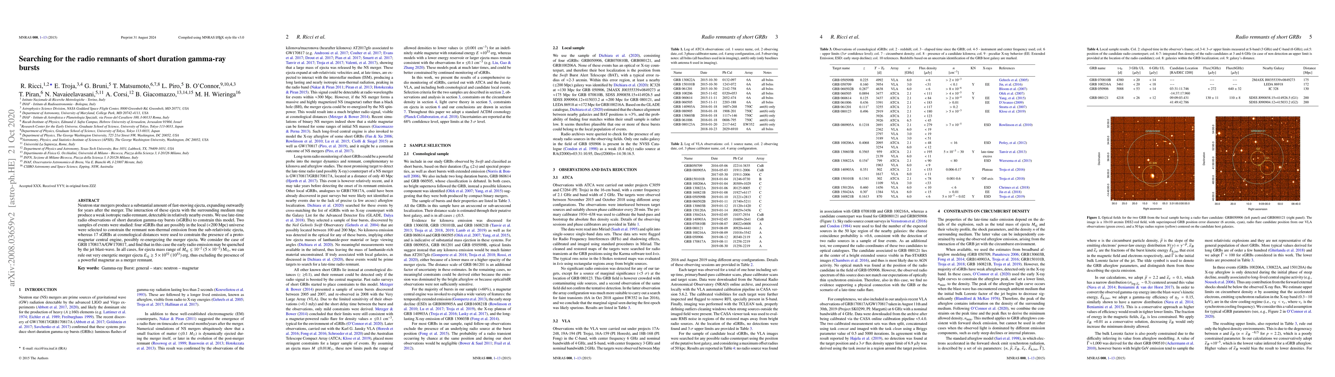 This study investigates radio remnants from short duration gamma-ray bursts (sGRBs), suggesting that neutron star mergers produce radio-emitting ejecta. By analyzing nearby and cosmological sGRB samples, the research concludes that for lower ejecta mass, powerful magnetars as merger remnants can be ruled out, and early radio emission in GRB 170817A/GW170817 might be suppressed by a jet blast-wave.