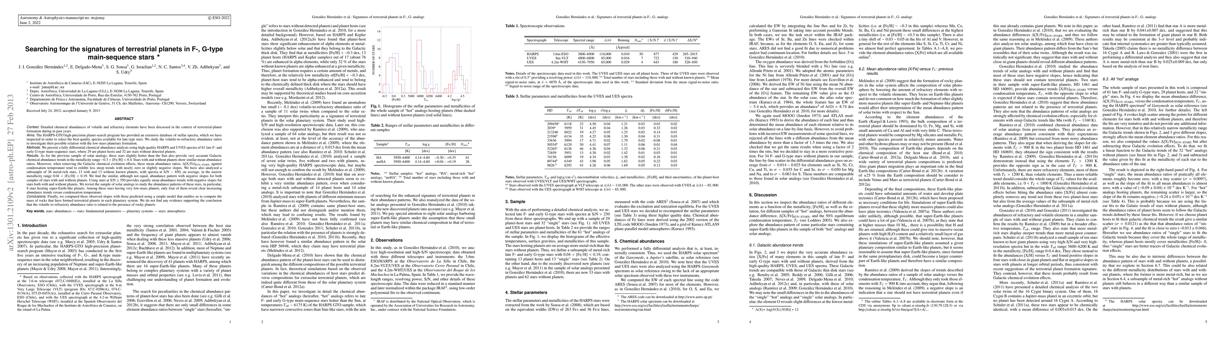 We have studied the volatile-to-refractory abundance ratios to investigate their possible relation with the low-mass planetary formation. We present a fully differential chemical abundance analysis using high-quality HARPS and UVES spectra of 61 late F- and early G-type main-sequence stars, 29 are planet hosts and 32 are stars without detected planets. As the previous sample of solar analogs, these stars slightly hotter than the Sun also provide very accurate Galactic chemical abundance trends in the metallicity range $-0.3<{\rm [Fe/H]}<0.4$. Stars with and without planets show similar mean abundance ratios. Moreover, when removing the Galactic chemical evolution effects, these mean abundance ratios, $\Delta {\rm [X/Fe]_{SUN-STARS}}$, versus condensation temperature tend to exhibit less steep trends with nearly null or slightly negative slopes. We have also analyzed a sub-sample of 26 metal-rich stars, 13 with and 13 without known planets and find the similar, although not equal, abundance pattern with negative slopes for both samples of stars with and without planets. Using stars at S/N $\ge 550$ provides equally steep abundance trends with negative slopes for both stars with and without planets. We revisit the sample of solar analogs to study the abundance patterns of these stars, in particular, 8 stars hosting super-Earth-like planets. Among these stars having very low-mass planets, only four of them reveal clear increasing abundance trends versus condensation temperature. Finally, we have compared these observed slopes with those predicted using a simple model which enables us to compute the mass of rocks which have formed terrestrial planets in each planetary system. We do not find any evidence supporting the conclusion that the volatile-to-refractory abundance ratio is related to the presence of rocky planets.