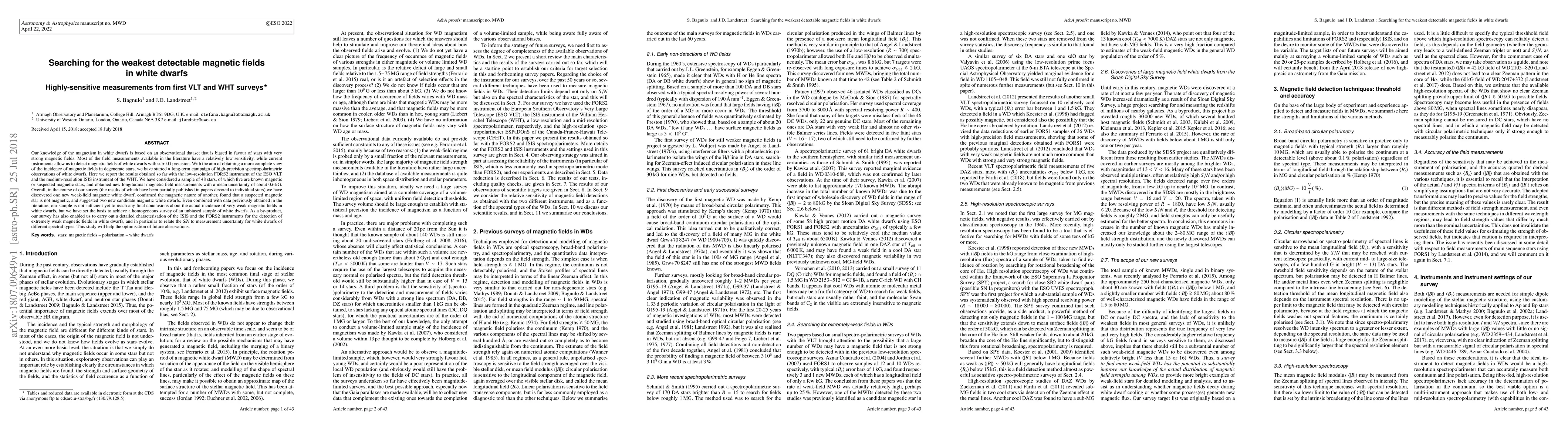 This research reports on the first results of a high-precision spectropolarimetric survey of white dwarfs using the VLT and WHT instruments, aiming to detect weak magnetic fields. The study discovered one new weak-field magnetic white dwarf and suggested two new candidates, while confirming and refuting the magnetic nature of others, laying the groundwork for a comprehensive survey of magnetic fields in white dwarfs.