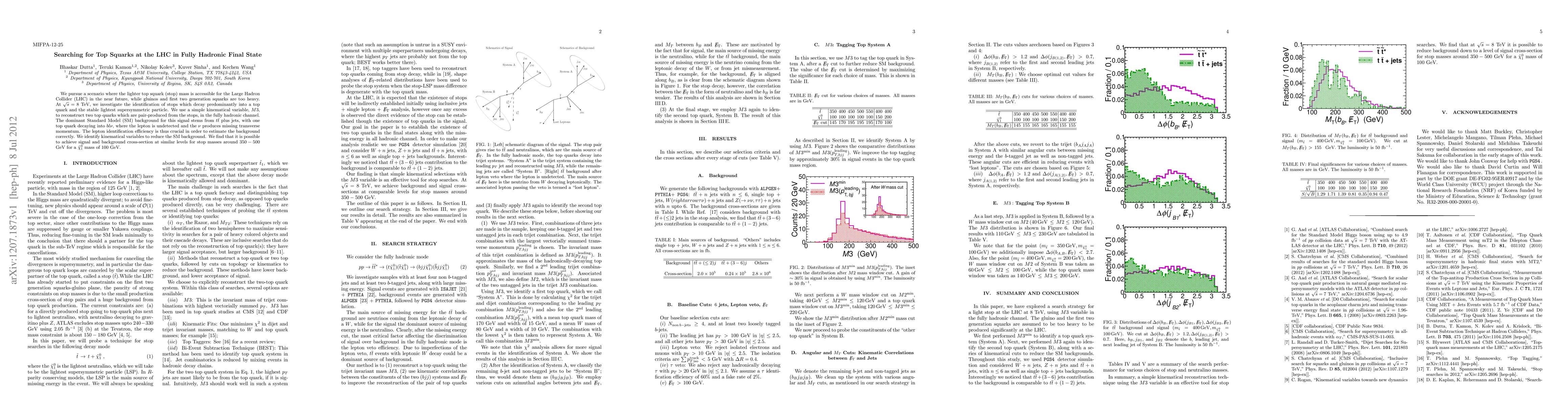 This paper explores the potential of the LHC to detect lighter top squarks (stops) in fully hadronic final states at $\sqrt{s} = 8$ TeV, focusing on kinematical reconstruction methods to distinguish stop signals from dominant Standard Model backgrounds. The study finds that with appropriate kinematical variables and lepton identification, stop masses around $350 - 500$ GeV can be probed effectively.