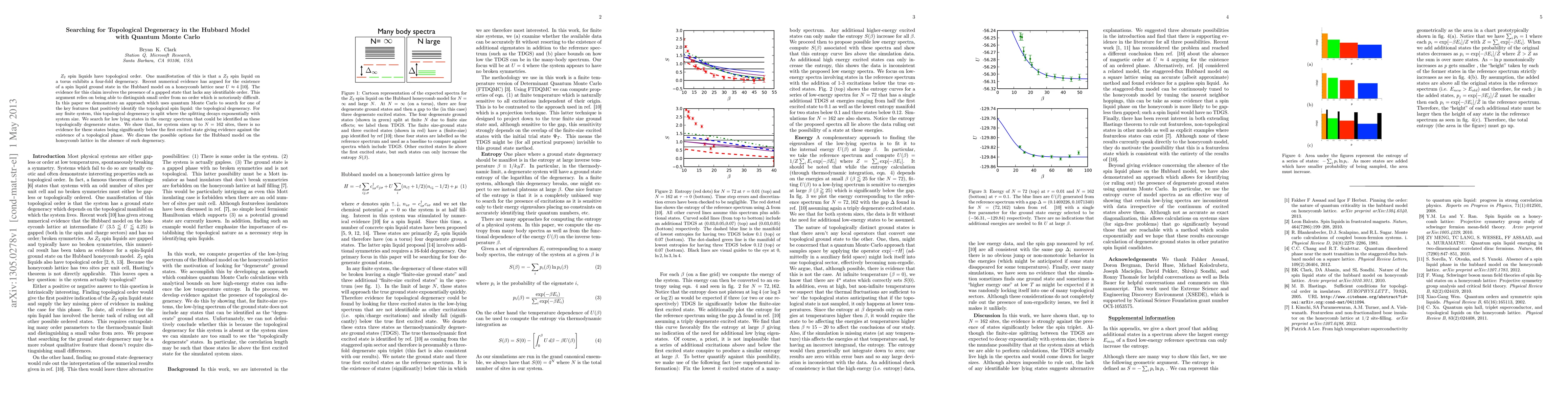 Z2 spin liquids have topological order. One manifestation of this is that a Z2 spin liquid on a torus exhibits a four-fold degeneracy. Recent numerical evidence has argued for the existence of a spin liquid ground state in the Hubbard model on a honeycomb lattice near U approximately 4. The evidence for this claim involves the presence of a gapped state that lacks any identifiable order. This argument relies on being able to distinguish small order from no order which is notoriously difficult. In this paper we demonstrate an approach which uses quantum Monte Carlo to search for one of the key features that positively identify the topological spin liquid: the topological degeneracy. For any finite system, this topological degeneracy is split where the splitting decays exponentially with system size. We search for low lying states in the energy spectrum that could be identified as these topologically degenerate states. We show that, for system sizes up to N=162 sites, there is no evidence for these states being significantly below the first excited state giving evidence against the existence of a topological phase. We discuss the possible options for the Hubbard model on the honeycomb lattice in the absence of such degeneracy.