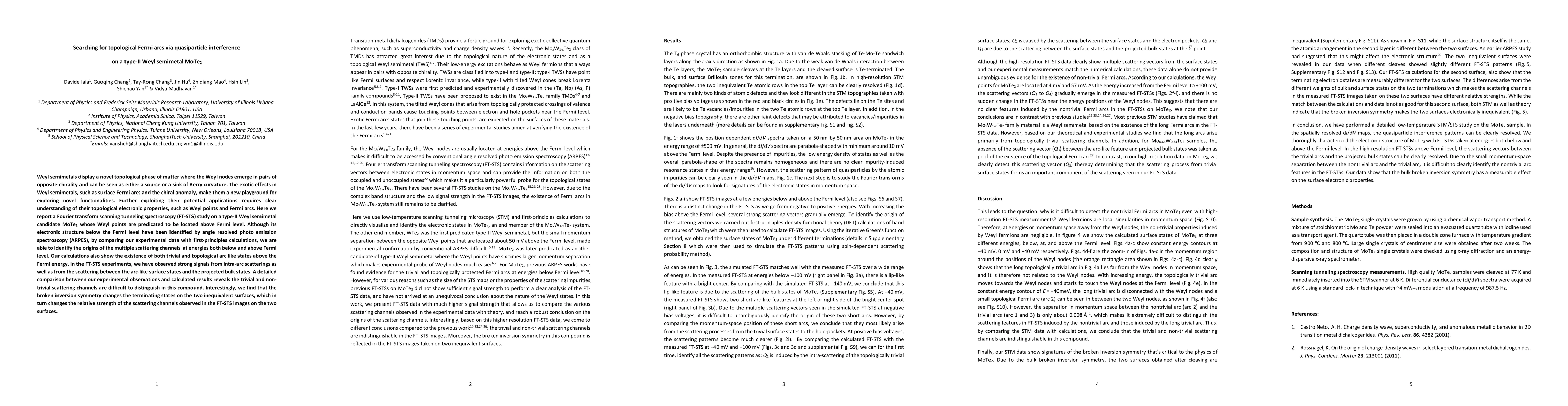 Weyl semimetals display a novel topological phase of matter where the Weyl nodes emerge in pairs of opposite chirality and can be seen as either a source or a sink of Berry curvature. The exotic effects in Weyl semimetals, such as surface Fermi arcs and the chiral anomaly, make them a new playground for exploring novel functionalities. Further exploiting their potential applications requires clear understanding of their topological electronic properties, such as Weyl points and Fermi arcs. Here we report a Fourier transform scanning tunneling spectroscopy (FT-STS) study on a type-II Weyl semimetal candidate MoTe$_2$ whose Weyl points are predicated to be located above Fermi level. Although its electronic structure below the Fermi level have been identified by angle resolved photo emission spectroscopy (ARPES), by comparing our experimental data with first-principles calculations, we are able to identify the origins of the multiple scattering channels at energies both below and above Fermi level. Our calculations also show the existence of both trivial and topological arc like states above the Fermi energy. In the FT-STS experiments, we have observed strong signals from intra-arc scatterings as well as from the scattering between the arc-like surface states and the projected bulk states. A detailed comparison between our experimental observations and calculated results reveals the trivial and non-trivial scattering channels are difficult to distinguish in this compound. Interestingly, we find that the broken inversion symmetry changes the terminating states on the two inequivalent surfaces, which in turn changes the relative strength of the scattering channels observed in the FT-STS images on the two surfaces.