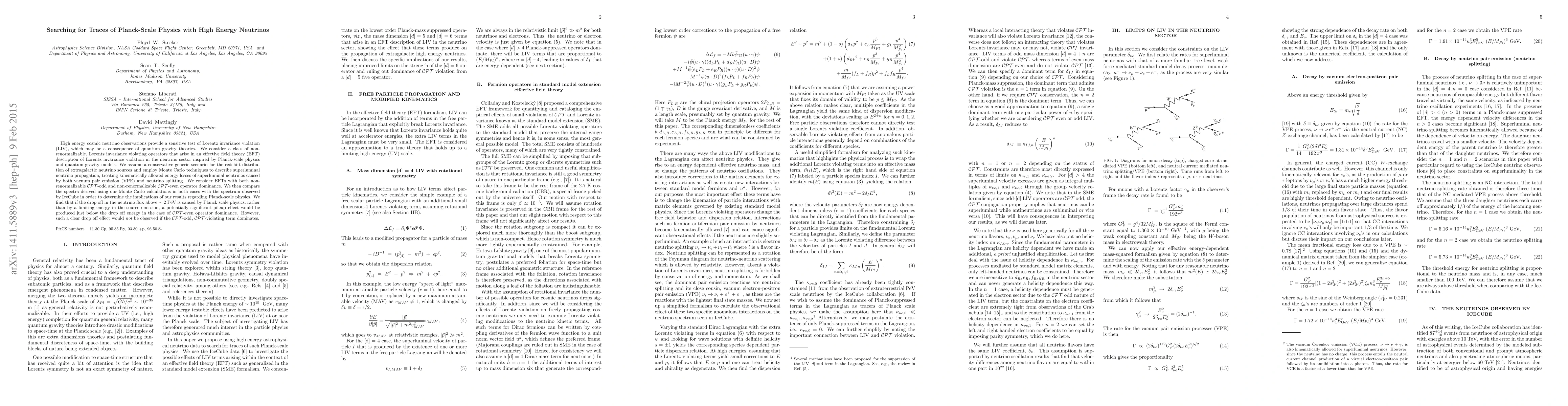 This paper investigates the potential violation of Lorentz invariance in high-energy neutrinos, a possible consequence of Planck-scale physics and quantum gravity. Using Monte Carlo simulations, it examines the implications of different effective field theories on neutrino spectra observed by IceCube, finding that a significant pileup effect may occur just below the energy where the neutrino flux drops off if CPT-even operators dominate.