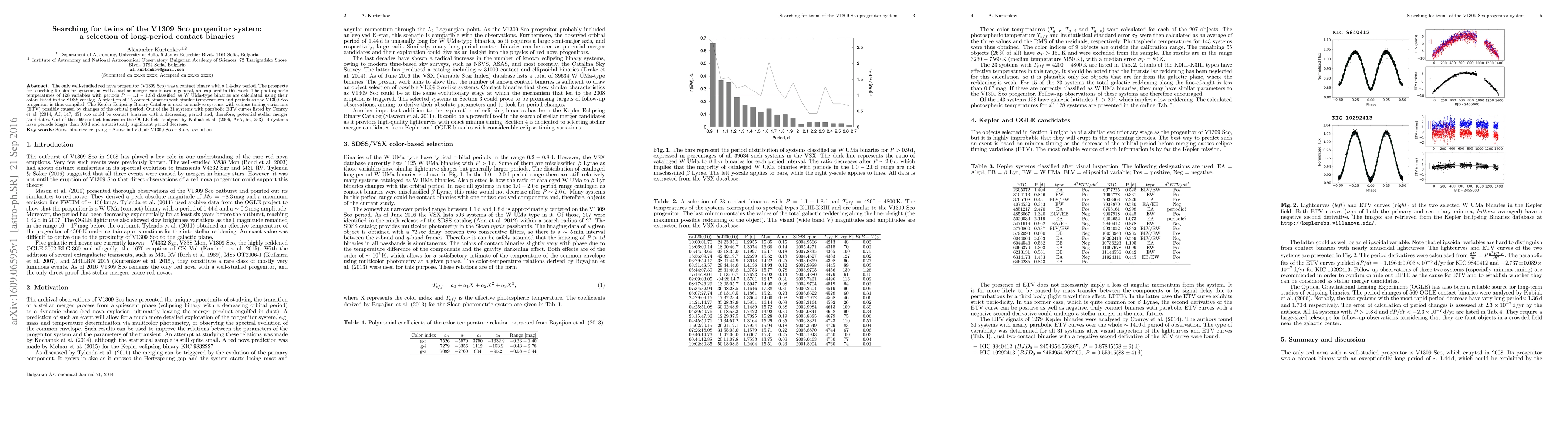 The only well-studied red nova progenitor (V1309 Sco) was a contact binary with a 1.4-day period. The prospects for searching for similar systems, as well as stellar merger candidates in general, are explored in this work. The photospheric temperatures of 128 variables with periods P = 1.1 - 1.8 d classified as W UMa-type binaries are calculated using their colors listed in the SDSS catalog. A selection of 15 contact binaries with similar temperatures and periods as the V1309 Sco progenitor is thus compiled. The Kepler Eclipsing Binary Catalog is used to analyse systems with eclipse timing variations (ETV) possibly caused by changes of the orbital period. Out of the 31 systems with parabolic ETV curves listed by Conroy et al. (2014, AJ, 147, 45) two could be contact binaries with a decreasing period and, therefore, potential stellar merger candidates. Out of the 569 contact binaries in the OGLE field analysed by Kubiak et al. (2006, AcA, 56, 253) 14 systems have periods longer than 0.8 d and a statistically significant period decrease.