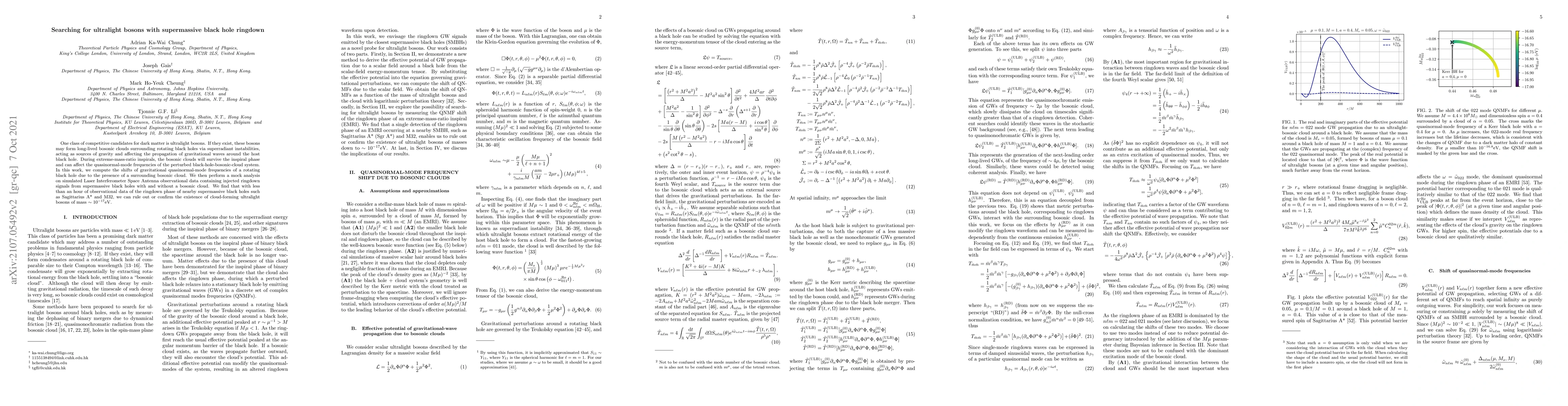 This paper investigates the potential detection of ultralight bosons via their influence on the ringdown phase of supermassive black holes, finding that gravitational wave data from the Laser Interferometer Space Antenna could confirm or rule out the existence of these bosons within an hour of observation.