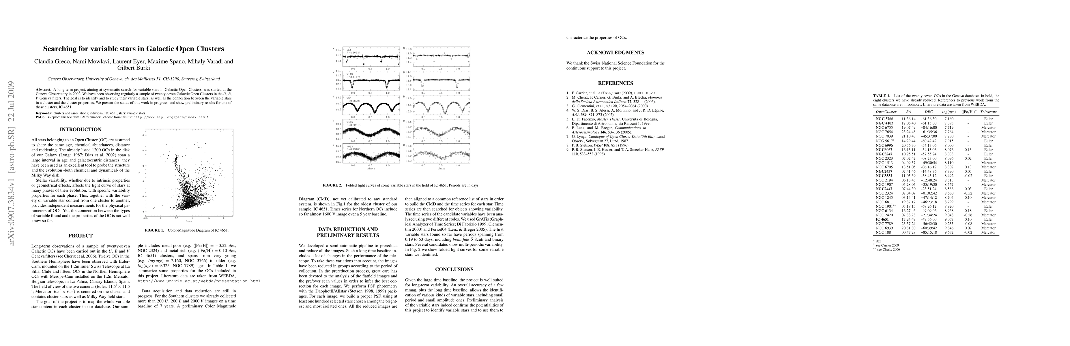 Researchers at the Geneva Observatory have been searching for variable stars in 27 Galactic Open Clusters using regular observations in U, B, V filters since 2002.
