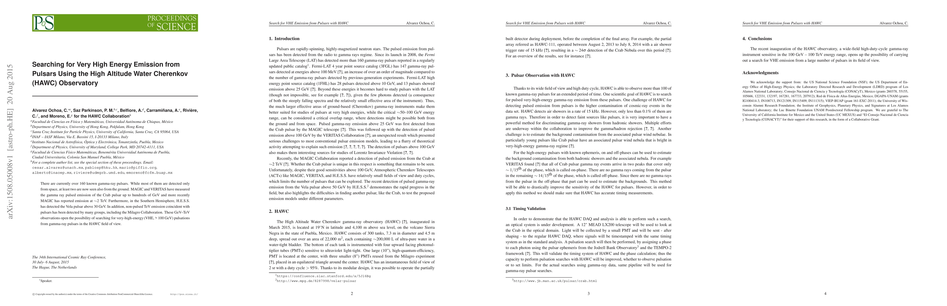 There are currently over 160 known gamma-ray pulsars. While most of them are detected only from space, at least two are now seen also from the ground. MAGIC and VERITAS have measured the gamma ray pulsed emission of the Crab pulsar up to hundreds of GeV and more recently MAGIC has reported emission at $\sim2$ TeV. Furthermore, in the Southern Hemisphere, H.E.S.S. has detected the Vela pulsar above 30 GeV. In addition, non-pulsed TeV emission coincident with pulsars has been detected by many groups, including the Milagro Collaboration. These GeV-TeV observations open the possibility of searching for very-high-energy (VHE, > 100GeV) pulsations from gamma-rays pulsars in the HAWC field of view.