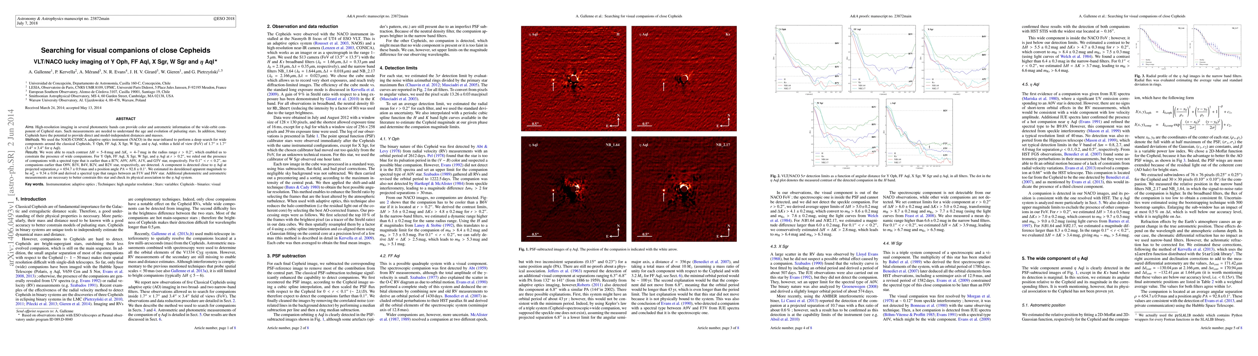Aims: High-resolution imaging in several photometric bands can provide color and astrometric information of the wide-orbit component of Cepheid stars. Such measurements are needed to understand the age and evolution of pulsating stars. In addition, binary Cepheids have the potential to provide direct and model-independent distances and masses. Methods: We used the NAOS-CONICA adaptive optics instrument (NACO) in the near-infrared to perform a deep search for wide components around the classical Cepheids, Y~Oph, FF~Aql, X~Sgr, W~Sgr, and $\eta$~Aql, within a field of view (FoV) of $1.7"\times 1.7"$ ($3.4"\times 3.4"$ for $\eta$~Aql). Results: We were able to reach contrast $\Delta H = 5$-8\,mag and $\Delta K_\mathrm{s} = 4$-7\,mag in the radius range $r > 0.2"$, which enabled us to constrain the presence of wide companions. For Y~Oph, FF~Aql, X~Sgr, W~Sgr, and $\eta$~Aql at $r > 0.2"$, we ruled out the presence of companions with a spectral type that is earlier than a B7V, A9V, A9V, A1V, and G5V star, respectively. For $0.1"< r < 0.2"$, no companions earlier than O9V, B3V, B4V, B2V, and B2V star, respectively, are detected. A component is detected close to $\eta$~Aql at projected separation $\rho = 654.7 \pm 0.9$\,mas and a position angle $PA = 92.8 \pm 0.1^\circ$. We estimated its dereddened apparent magnitude to be $m_H^0 = 9.34 \pm 0.04$ and derived a spectral type that ranges between an F1V and F6V star. Additional photometric and astrometric measurements are necessary to better constrain this star and check its physical association to the $\eta$~Aql system.