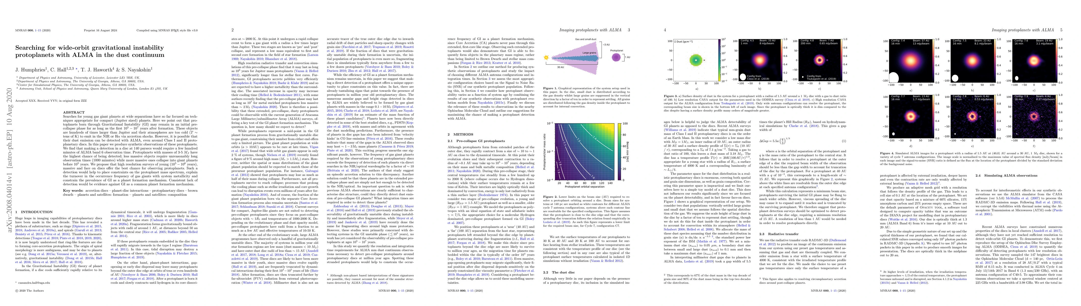 Researchers propose using ALMA to detect wide-orbit gravitational instability protoplanets in the dust continuum, which could help constrain planet formation mechanisms and explain the occurrence frequency of gas giants.