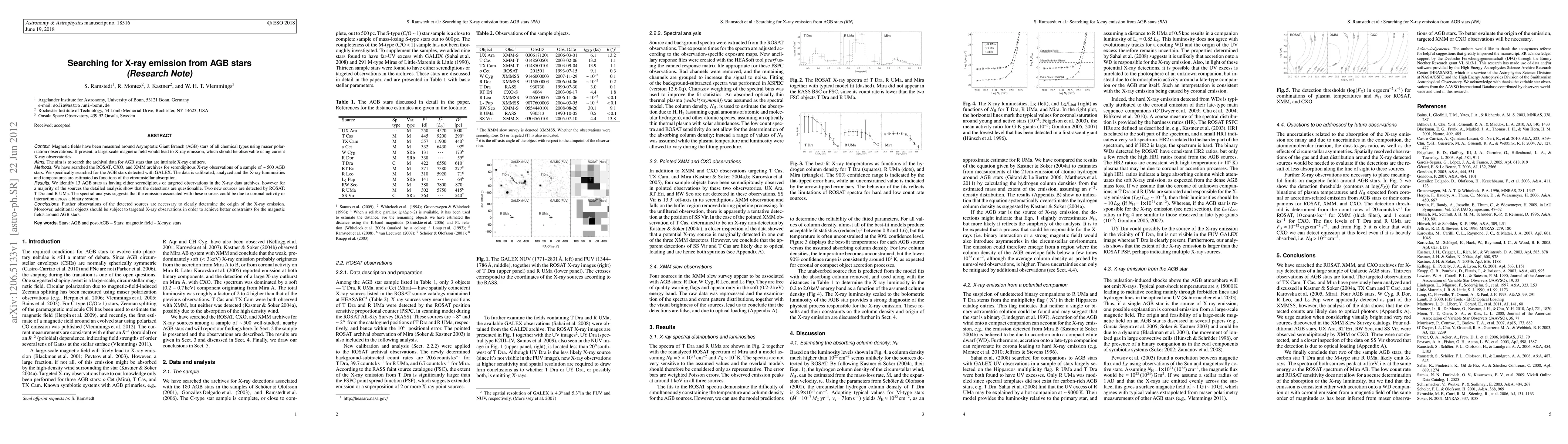 This research investigates X-ray emission from Asymptotic Giant Branch (AGB) stars using archival data from ROSAT, CXO, and XMM observatories. While 13 AGB stars show potential X-ray detections, most are questionable, and only two new sources (T Dra and R UMa) are confirmed, likely due to coronal activity or binary interactions. Further targeted observations are needed to clarify the origins and better constrain magnetic fields around AGB stars.