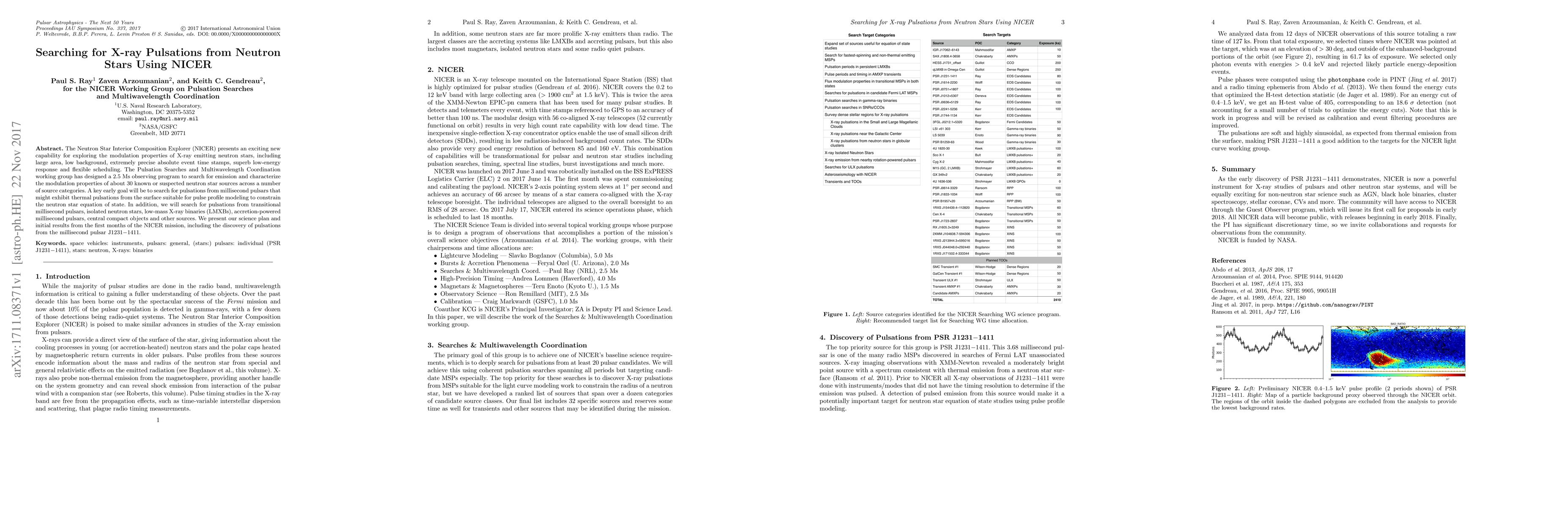 The study used NICER data to search for pulsations from PSR J1231-1411.