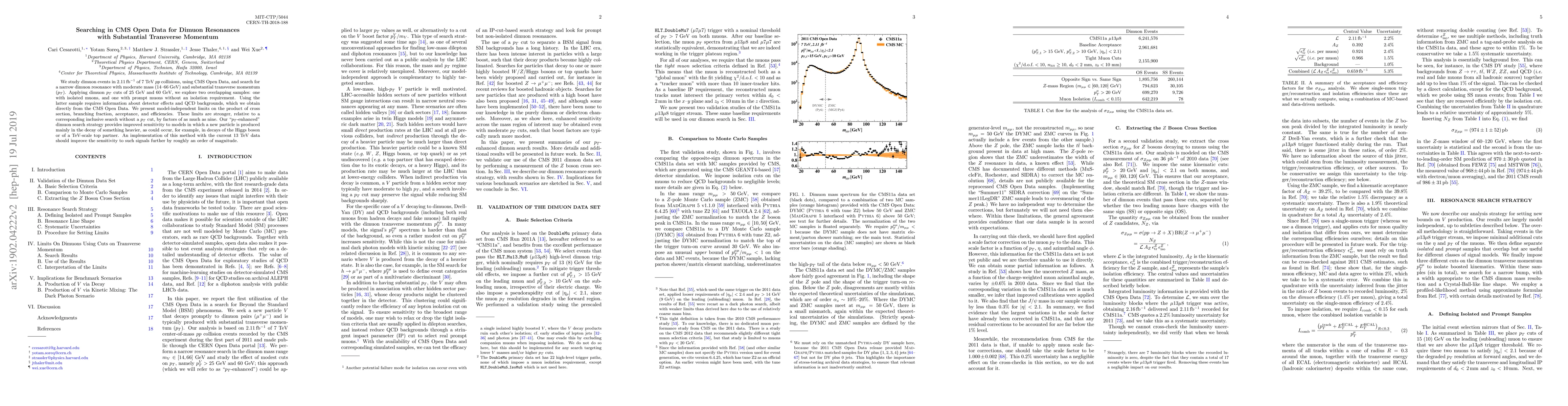 This paper investigates dimuon events in CMS Open Data from 7 TeV proton-proton collisions, aiming to detect a narrow dimuon resonance with moderate mass and substantial transverse momentum. The study enhances sensitivity by applying pT cuts, leading to stronger limits on new particle production models.