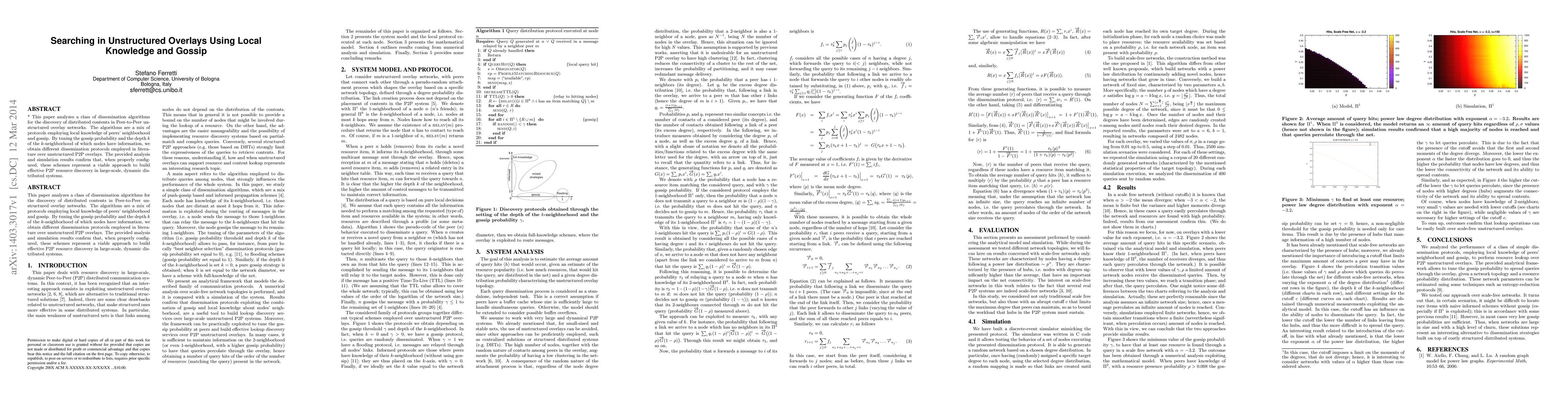 This paper analyzes a class of dissemination algorithms for the discovery of distributed contents in Peer-to-Peer unstructured overlay networks. The algorithms are a mix of protocols employing local knowledge of peers' neighborhood and gossip. By tuning the gossip probability and the depth k of the k-neighborhood of which nodes have information, we obtain different dissemination protocols employed in literature over unstructured P2P overlays. The provided analysis and simulation results confirm that, when properly configured, these schemes represent a viable approach to build effective P2P resource discovery in large-scale, dynamic distributed systems.