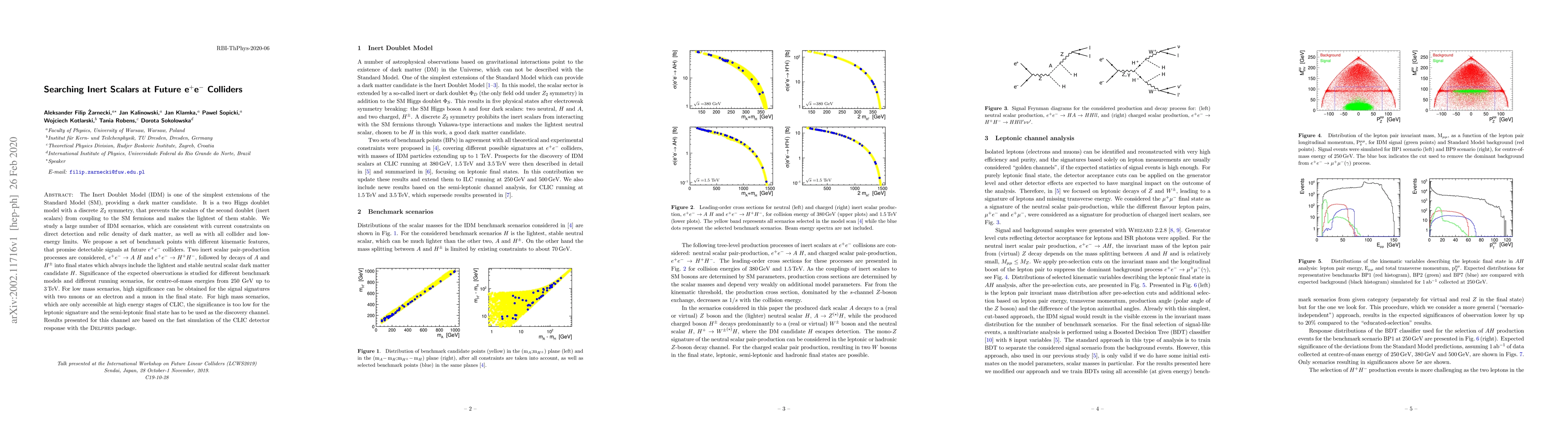 This paper explores the detection prospects of inert scalars in the Inert Doublet Model at future $e^+e^-$ colliders, proposing benchmark scenarios consistent with dark matter constraints. It finds that low-mass scenarios can yield high significance signals with muons, while high-mass scenarios require semi-leptonic final states for detection, evaluated through CLIC detector simulations.