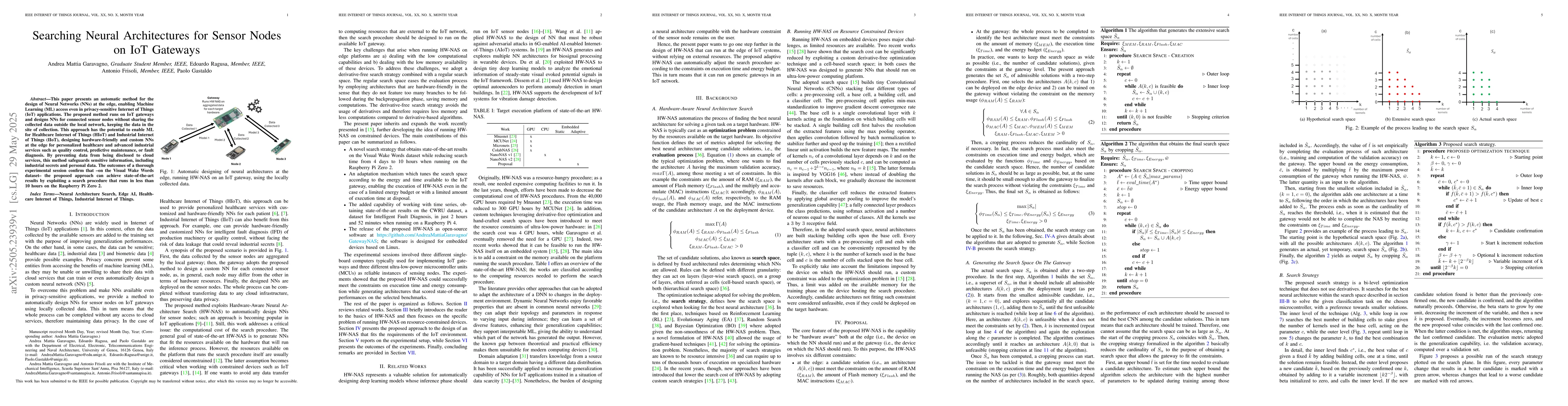 This paper introduces a method for automatically designing Neural Networks on IoT gateways, allowing Machine Learning at the edge without sharing data outside the local network. The approach, tested on Raspberry Pi Zero 2, ensures data privacy in healthcare and industrial applications, achieving state-of-the-art results in under 10 hours.