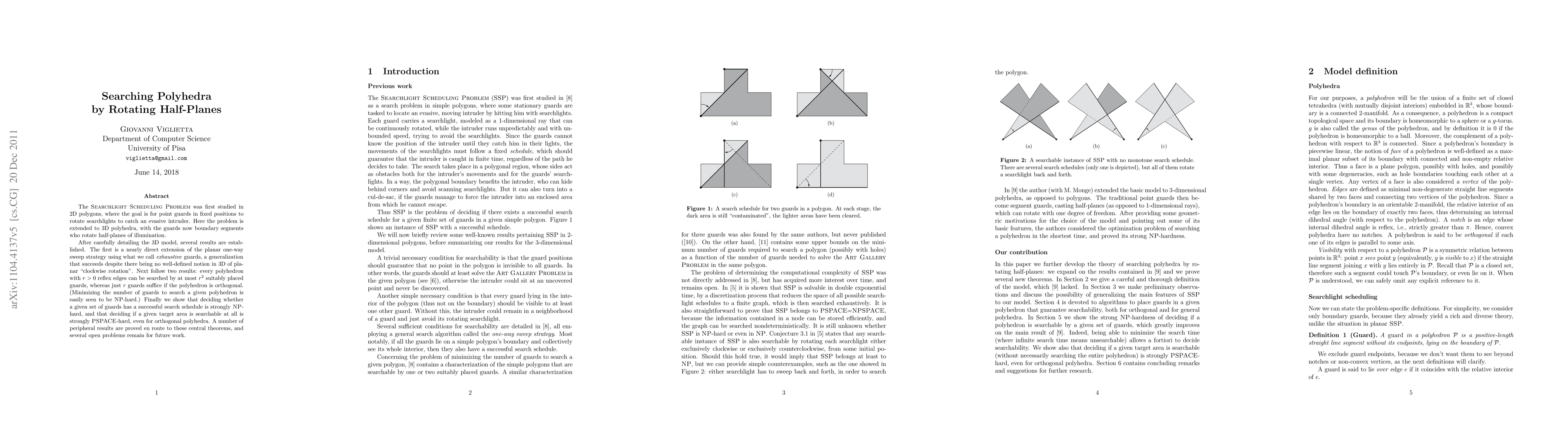 Researchers developed a method to search 3D polyhedra using rotating half-planes of illumination, finding that the number of guards needed varies depending on the polyhedron's shape and structure.