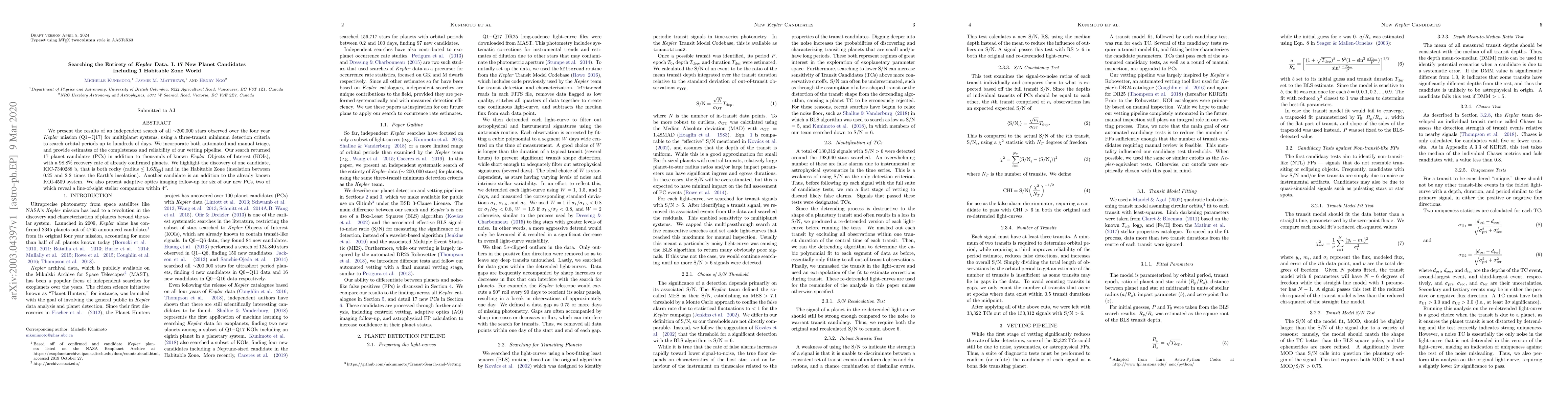 We present the results of an independent search of all ~200,000 stars observed over the four year Kepler mission (Q1-Q17) for multiplanet systems, using a three-transit minimum detection criteria to search orbital periods up to hundreds of days. We incorporate both automated and manual triage, and provide estimates of the completeness and reliability of our vetting pipeline. Our search returned 17 planet candidates (PCs) in addition to thousands of known Kepler Objects of Interest (KOIs), with a 98.8% recovery rate of already confirmed planets. We highlight the discovery of one candidate, KIC-7340288 b, that is both rocky (radius < 1.6 $R_{\bigoplus}$) and in the Habitable Zone (insolation between 0.25 and 2.2 times the Earth's insolation). Another candidate is an addition to the already known KOI-4509 system. We also present adaptive optics imaging follow-up for six of our new PCs, two of which reveal a line-of-sight stellar companion within 4''.