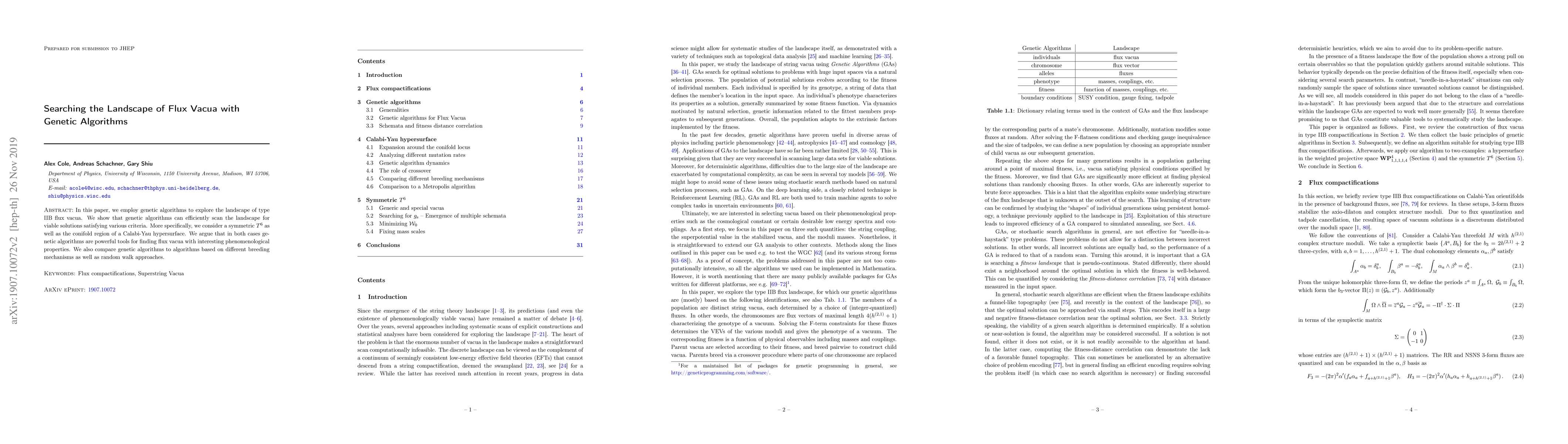 This paper utilizes genetic algorithms to efficiently explore the complex landscape of type IIB flux vacua, demonstrating their effectiveness in finding viable solutions, particularly in symmetric $T^{6}$ and conifold regions of Calabi-Yau hypersurfaces, and compares their performance to alternative methods.