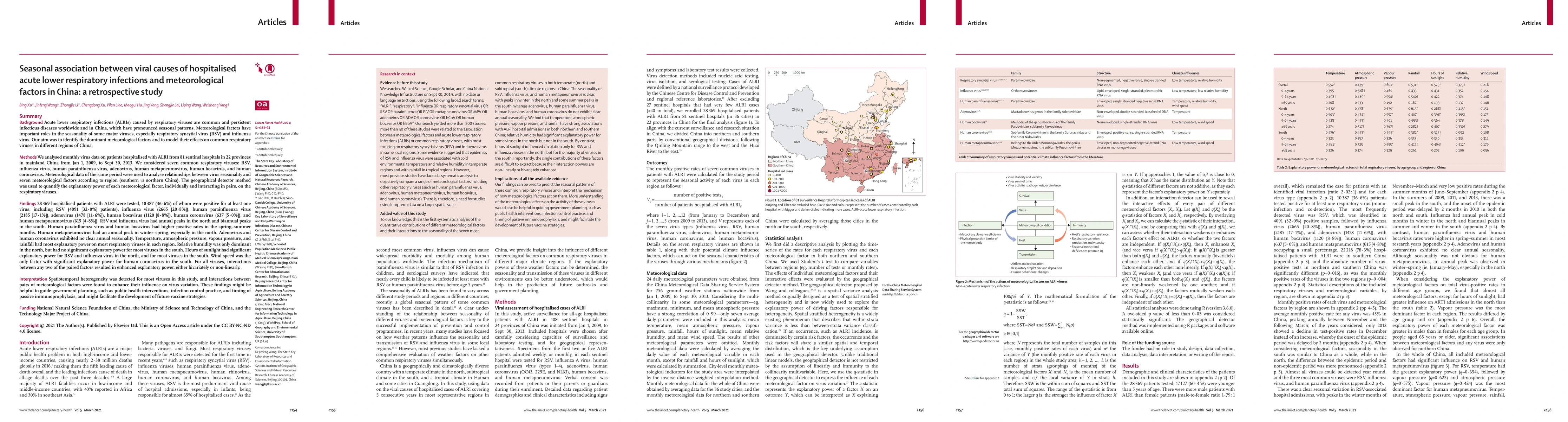 This study identifies the dominant meteorological factors influencing seasonal patterns of respiratory viruses causing acute lower respiratory infections in China, finding that temperature, atmospheric pressure, vapour pressure, and rainfall are key explanatory factors. Interactions between these factors further enhance their predictive power for virus seasonality across different regions.