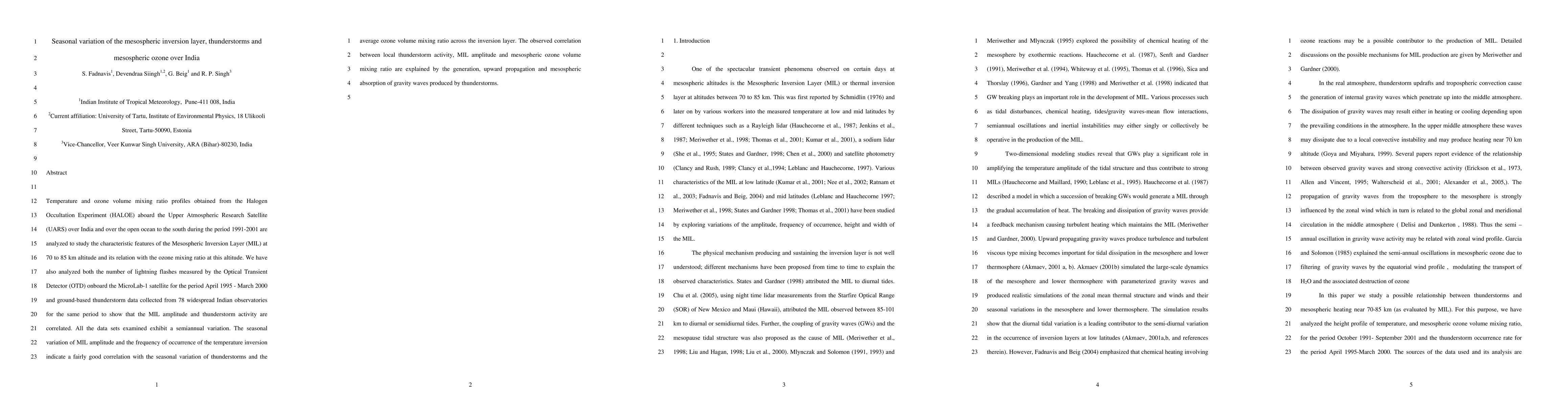 This study analyzes HALOE satellite data and lightning data to investigate the seasonal variation of the Mesospheric Inversion Layer (MIL) over India, finding a correlation between MIL amplitude, thunderstorm activity, and mesospheric ozone. The results suggest that gravity waves from thunderstorms influence the MIL and ozone mixing ratio.