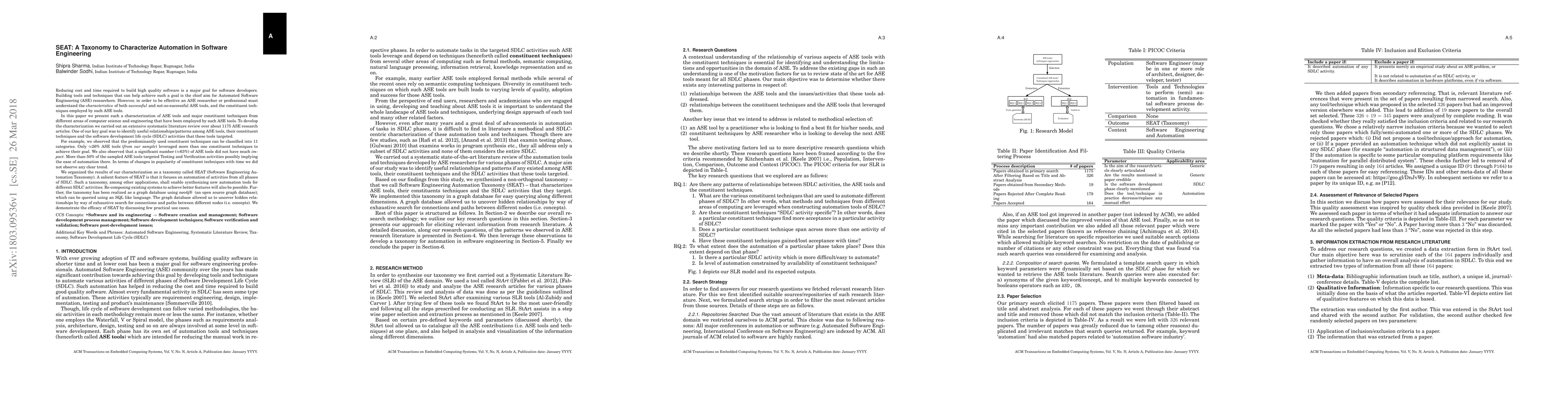 The paper presents SEAT, a taxonomy to characterize automation in software engineering, developed through a systematic literature review of ASE tools and techniques. SEAT focuses on automating activities across all phases of the software development life cycle, enabling the synthesis of new automation tools and the recomposition of existing systems.