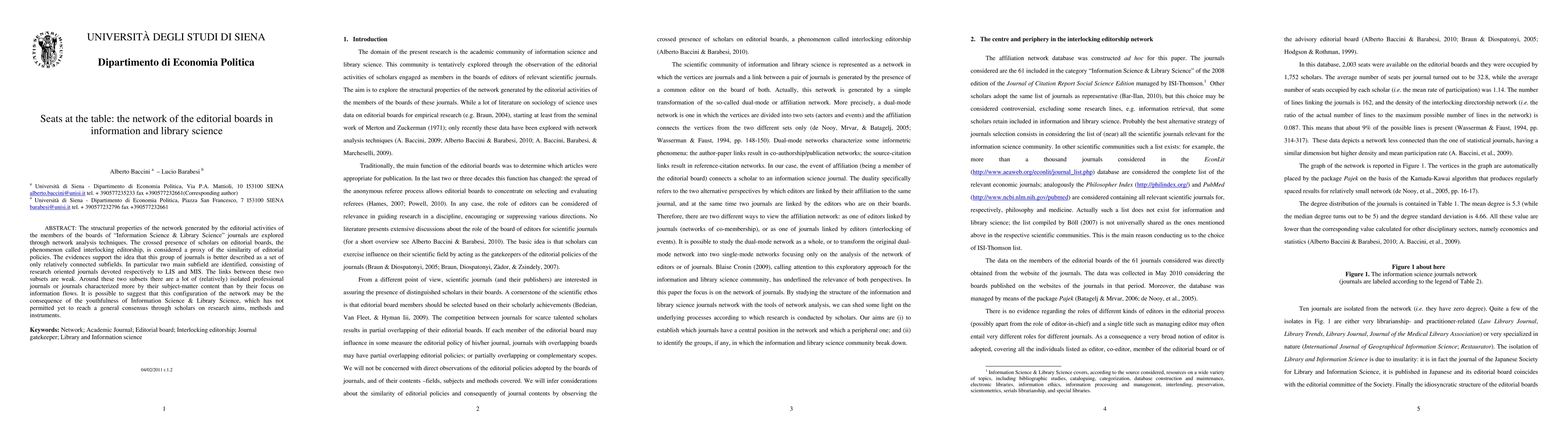 This study explores the editorial board network of "Information Science & Library Science" journals, revealing a fragmented structure with two main subfields focused on Library and Information Science (LIS) and Management Information Systems (MIS). The weak connections between these subfields suggest a lack of consensus among scholars in the field.